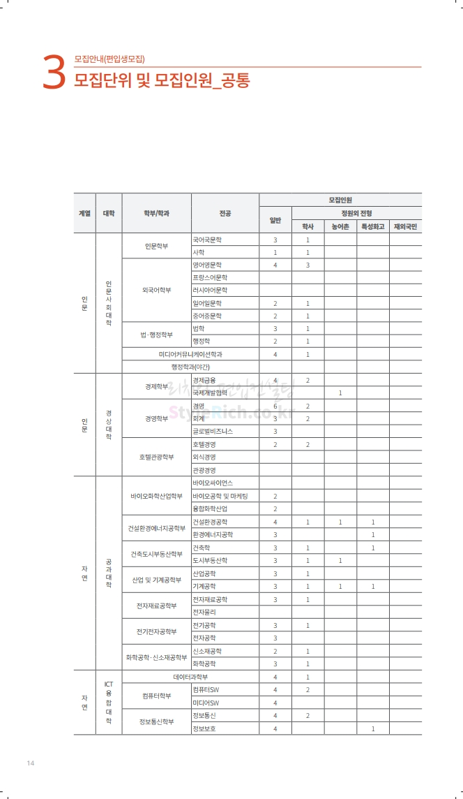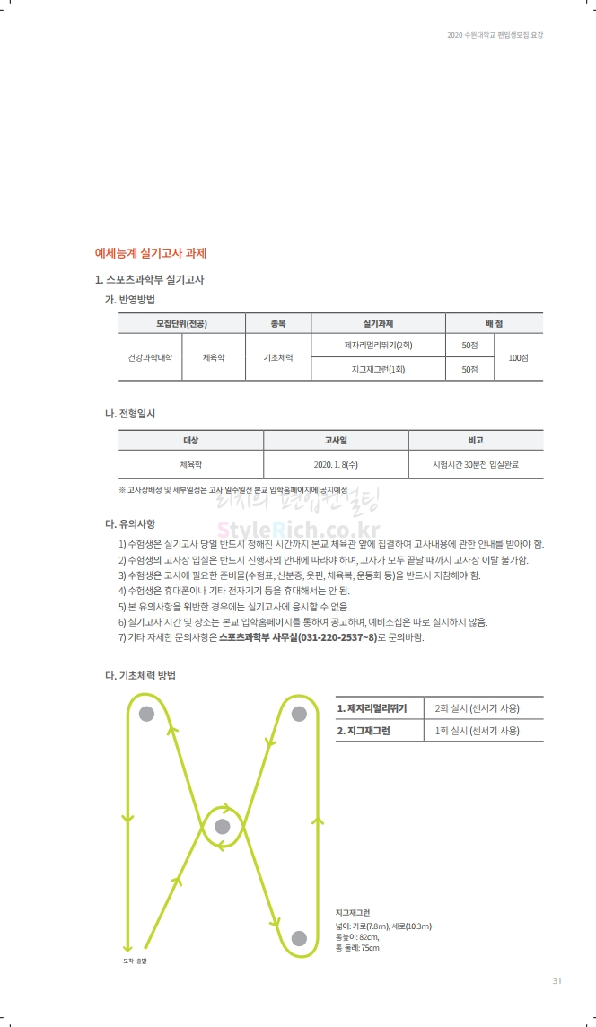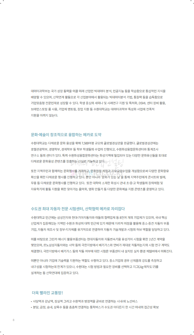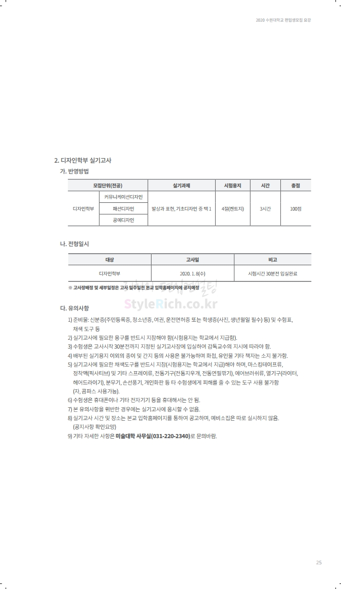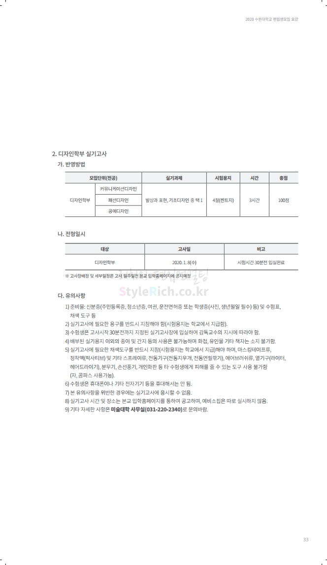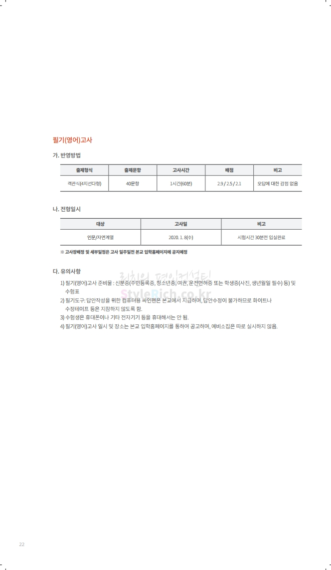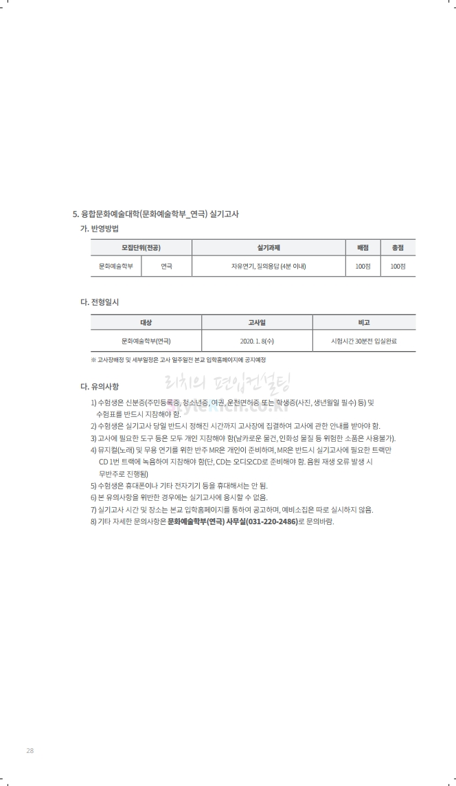수원대 편입 2020학년도 모집요강 간편하게 보자 2019.12.07 02:46 편입 모집요강/2020학년도 모집요강 2020학년도 수원대 편입 모집요강을 간편하게 확인하세요. PC와 모바일 모두에서 이미지를 클릭(터치) 후 이미지의 좌우측을 각각 클릭하면 모집요강 순서를 앞뒤로 넘길 수 있습니다. 좌측 클릭(터치)는 이전 페이지, 우측 클릭(터치)는 다음 페이지입니다. * 최종 모집요강 발표 후에도 일부 내용이 변경될 수 있으니 지원 전 반드시 수원대 입학처의 모집요강을 확인하시기 바랍니다. 2020학년도 수원대 편입 모집요강 다운받기 usw_2020_transfer.pdf 3.17MB <출처: 수원대 홈페이지> [VLOG] 수원대학교 가을축제 너나들이 브이로그 공유하기 게시글 관리 리치의 편입컨설팅 저작자표시 비영리 변경금지 (새창열림) '편입 모집요강 > 2020학년도 모집요강' 카테고리의 다른 글 한양대(ERICA) 편입 2020학년도 모집요강 간편하게 보자 (0) 2019.12.09 경희대 편입 2020학년도 모집요강 간편하게 보자 (0) 2019.12.09 연세대(미래) 편입 2020학년도 모집요강 간편하게 보자 (0) 2019.12.07 한국산업기술대 편입 2020학년도 모집요강 간편하게 보자 (0) 2019.12.07 숙명여대 편입 2020학년도 모집요강 간편하게 보자 (0) 2019.12.07 댓글 공유하기 다른 글 댓글 이 글 공유하기 구독하기 구독하기 카카오톡 카카오톡 라인 라인 트위터 트위터 Facebook Facebook 카카오스토리 카카오스토리 밴드 밴드 네이버 블로그 네이버 블로그 Pocket Pocket Evernote Evernote 다른 글 한양대(ERICA) 편입 2020학년도 모집요강 간편하게 보자 한양대(ERICA) 편입 2020학년도 모집요강 간편하게 보자 2019.12.09 경희대 편입 2020학년도 모집요강 간편하게 보자 경희대 편입 2020학년도 모집요강 간편하게 보자 2019.12.09 연세대(미래) 편입 2020학년도 모집요강 간편하게 보자 연세대(미래) 편입 2020학년도 모집요강 간편하게 보자 2019.12.07 한국산업기술대 편입 2020학년도 모집요강 간편하게 보자 한국산업기술대 편입 2020학년도 모집요강 간편하게 보자 2019.12.07 다른 글 더 둘러보기