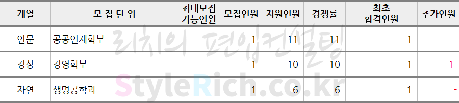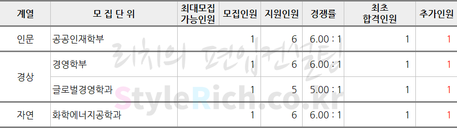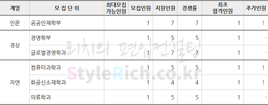 2019학년도 상명대 기회균형선발편입 추가합격 현황