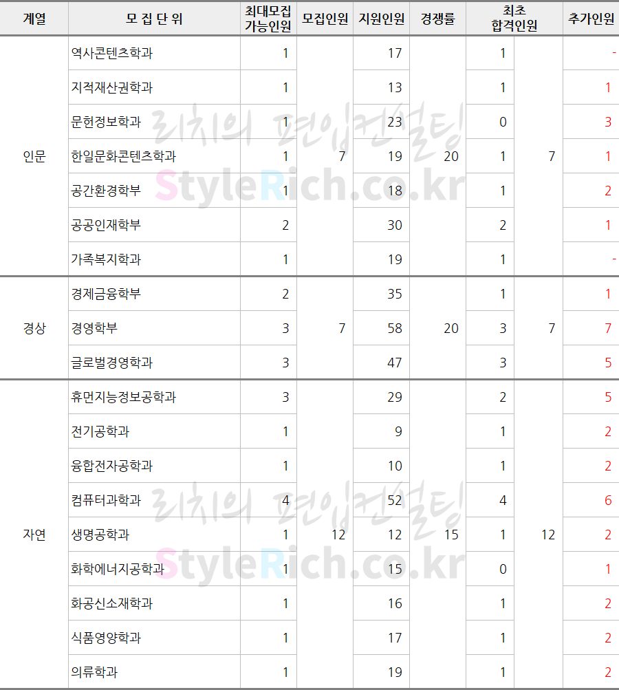 2019학년도 상명대 학사편입 추가합격 현황