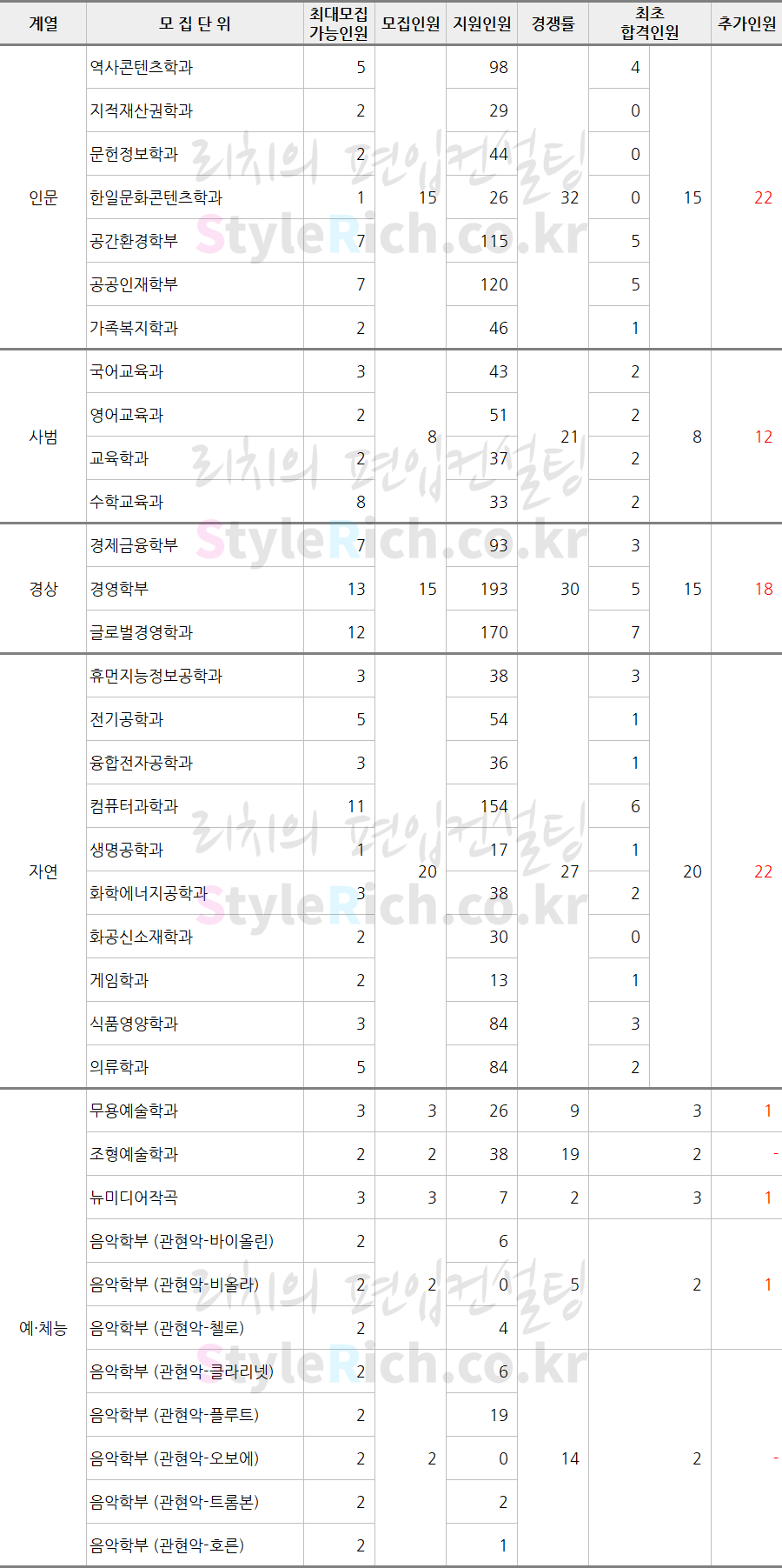 * 재외국민편입, 군위탁생편입은 추가합격이 없어 제외