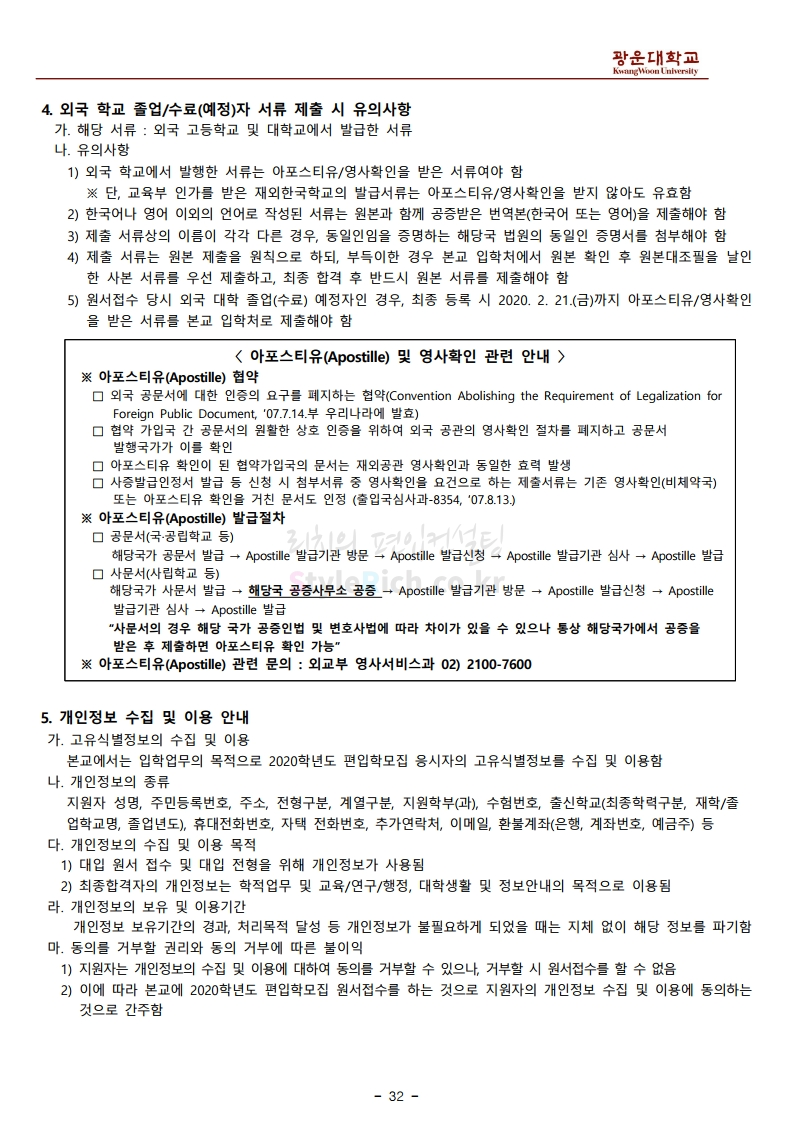 광운대 편입 2020학년도 모집요강 간편하게 보자 2019.12.11 03:18 편입 모집요강/2020학년도 모집요강 2020학년도 광운대 편입 모집요강을 간편하게 확인하세요. PC와 모바일 모두에서 이미지를 클릭(터치) 후 이미지의 좌우측을 각각 클릭하면 모집요강 순서를 앞뒤로 넘길 수 있습니다. 좌측 클릭(터치)는 이전 페이지, 우측 클릭(터치)는 다음 페이지입니다. * 최종 모집요강 발표 후에도 일부 내용이 변경될 수 있으니 지원 전 반드시 광운대 입학처의 모집요강을 확인하시기 바랍니다. 2020학년도 광운대 편입 모집요강 다운받기 2020_pyunip.pdf 1.67MB <출처: 광운대 홈페이지> 광운뉴스 154회 따스한 감성 영화 추천 #광운대학교 공유하기 게시글 관리 리치의 편입컨설팅 저작자표시 비영리 변경금지 (새창열림) '편입 모집요강 > 2020학년도 모집요강' 카테고리의 다른 글 가톨릭대 편입 2020학년도 모집요강 간편하게 보자 (0) 2019.12.12 아주대 편입 2020학년도 모집요강 간편하게 보자 (0) 2019.12.11 홍익대 편입 2020학년도 모집요강 간편하게 보자 (0) 2019.12.11 인하대 편입 2020학년도 모집요강 간편하게 보자 (0) 2019.12.11 서울시립대 편입 2020학년도 모집요강 간편하게 보자(12/4 수정기준) (0) 2019.12.11 댓글 공유하기 다른 글 댓글 이 글 공유하기 구독하기 구독하기 카카오톡 카카오톡 라인 라인 트위터 트위터 Facebook Facebook 카카오스토리 카카오스토리 밴드 밴드 네이버 블로그 네이버 블로그 Pocket Pocket Evernote Evernote 다른 글 가톨릭대 편입 2020학년도 모집요강 간편하게 보자 가톨릭대 편입 2020학년도 모집요강 간편하게 보자 2019.12.12 아주대 편입 2020학년도 모집요강 간편하게 보자 아주대 편입 2020학년도 모집요강 간편하게 보자 2019.12.11 홍익대 편입 2020학년도 모집요강 간편하게 보자 홍익대 편입 2020학년도 모집요강 간편하게 보자 2019.12.11 인하대 편입 2020학년도 모집요강 간편하게 보자 인하대 편입 2020학년도 모집요강 간편하게 보자 2019.12.11 다른 글 더 둘러보기