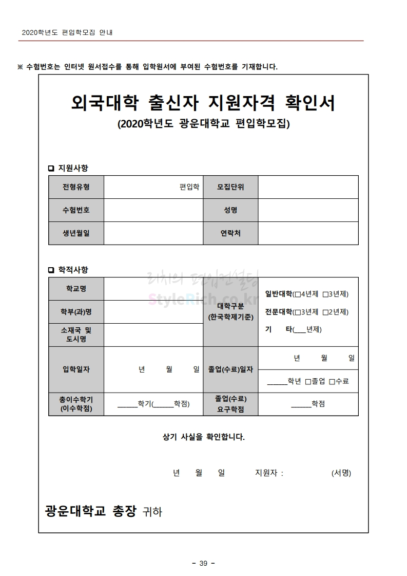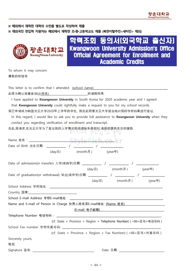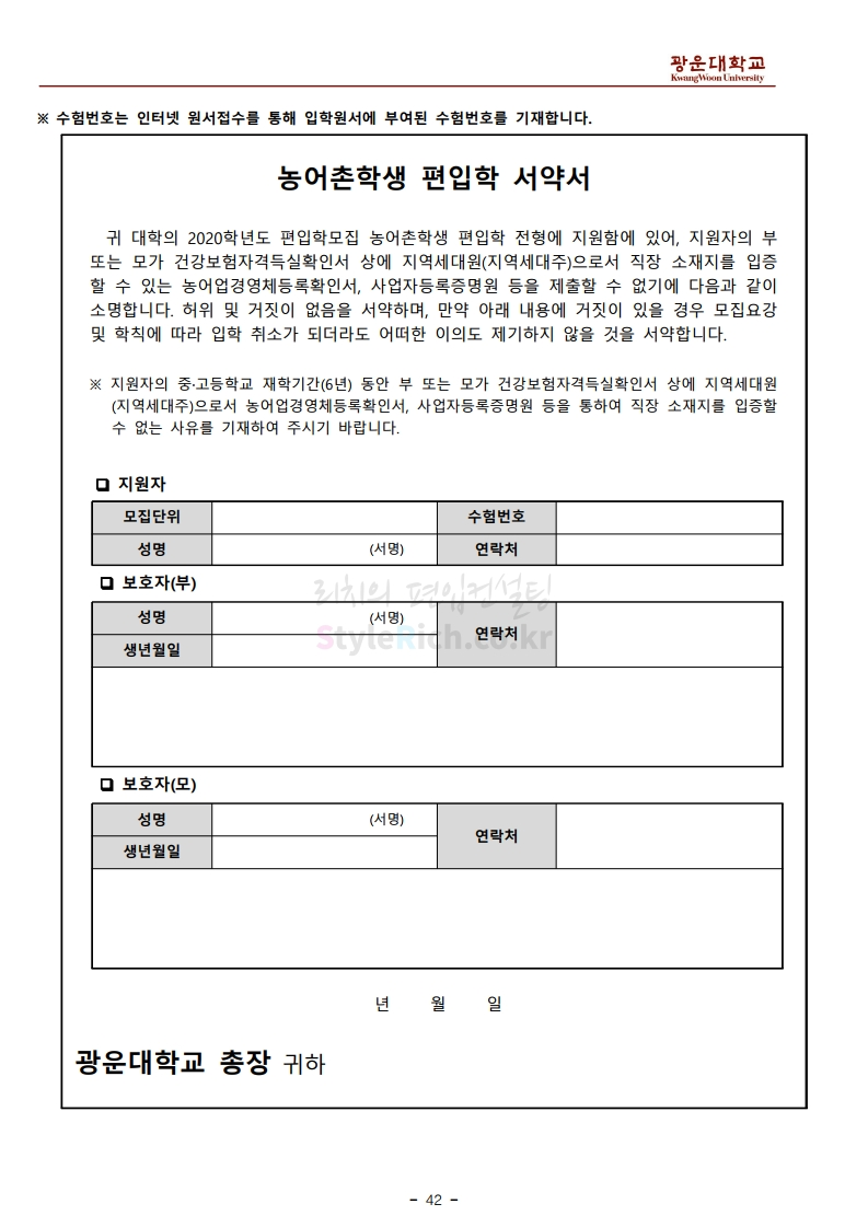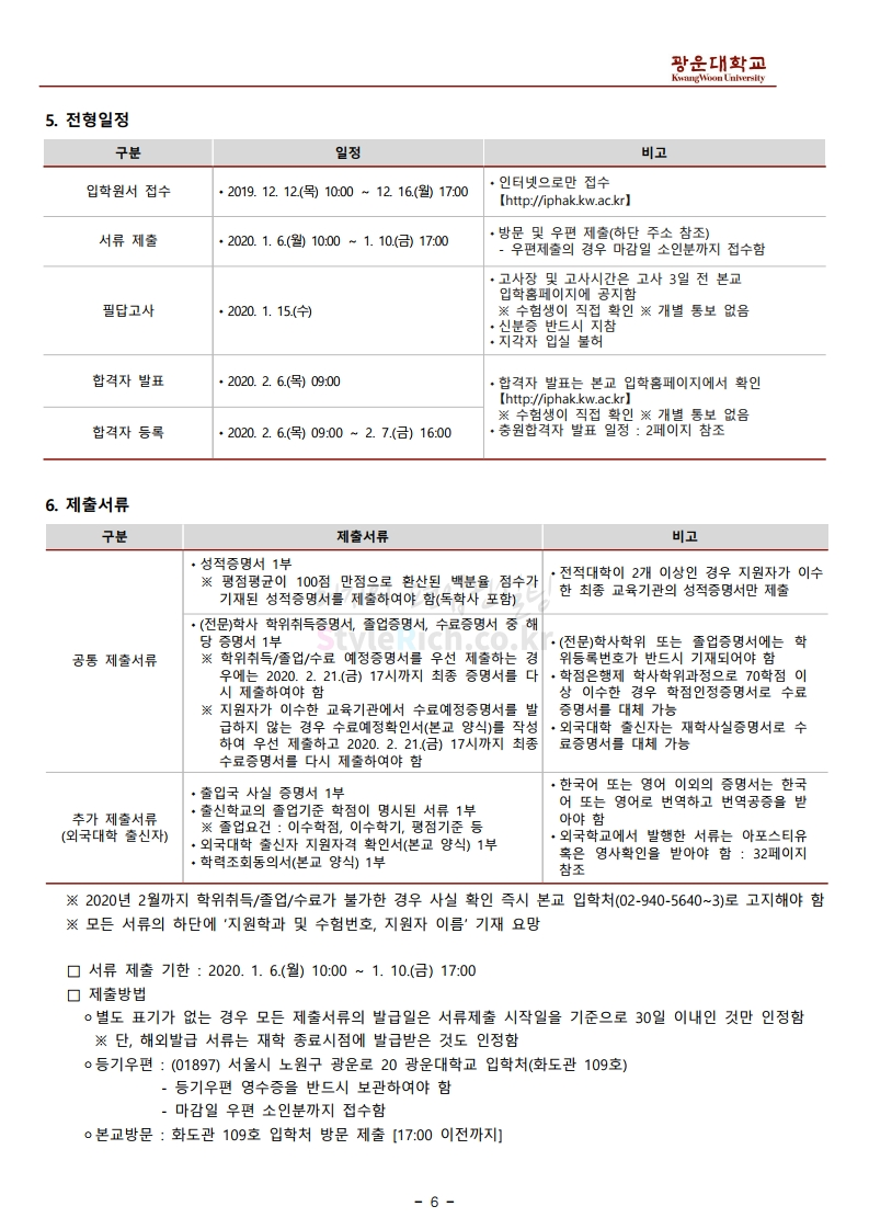광운대 편입 2020학년도 모집요강 간편하게 보자 2019.12.11 03:18 편입 모집요강/2020학년도 모집요강 2020학년도 광운대 편입 모집요강을 간편하게 확인하세요. PC와 모바일 모두에서 이미지를 클릭(터치) 후 이미지의 좌우측을 각각 클릭하면 모집요강 순서를 앞뒤로 넘길 수 있습니다. 좌측 클릭(터치)는 이전 페이지, 우측 클릭(터치)는 다음 페이지입니다. * 최종 모집요강 발표 후에도 일부 내용이 변경될 수 있으니 지원 전 반드시 광운대 입학처의 모집요강을 확인하시기 바랍니다. 2020학년도 광운대 편입 모집요강 다운받기 2020_pyunip.pdf 1.67MB <출처: 광운대 홈페이지> 광운뉴스 154회 따스한 감성 영화 추천 #광운대학교 공유하기 게시글 관리 리치의 편입컨설팅 저작자표시 비영리 변경금지 (새창열림) '편입 모집요강 > 2020학년도 모집요강' 카테고리의 다른 글 가톨릭대 편입 2020학년도 모집요강 간편하게 보자 (0) 2019.12.12 아주대 편입 2020학년도 모집요강 간편하게 보자 (0) 2019.12.11 홍익대 편입 2020학년도 모집요강 간편하게 보자 (0) 2019.12.11 인하대 편입 2020학년도 모집요강 간편하게 보자 (0) 2019.12.11 서울시립대 편입 2020학년도 모집요강 간편하게 보자(12/4 수정기준) (0) 2019.12.11 댓글 공유하기 다른 글 댓글 이 글 공유하기 구독하기 구독하기 카카오톡 카카오톡 라인 라인 트위터 트위터 Facebook Facebook 카카오스토리 카카오스토리 밴드 밴드 네이버 블로그 네이버 블로그 Pocket Pocket Evernote Evernote 다른 글 가톨릭대 편입 2020학년도 모집요강 간편하게 보자 가톨릭대 편입 2020학년도 모집요강 간편하게 보자 2019.12.12 아주대 편입 2020학년도 모집요강 간편하게 보자 아주대 편입 2020학년도 모집요강 간편하게 보자 2019.12.11 홍익대 편입 2020학년도 모집요강 간편하게 보자 홍익대 편입 2020학년도 모집요강 간편하게 보자 2019.12.11 인하대 편입 2020학년도 모집요강 간편하게 보자 인하대 편입 2020학년도 모집요강 간편하게 보자 2019.12.11 다른 글 더 둘러보기