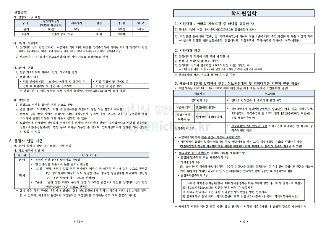 2020학년도 아주대 편입 모집요강을 간편하게 확인하세요.