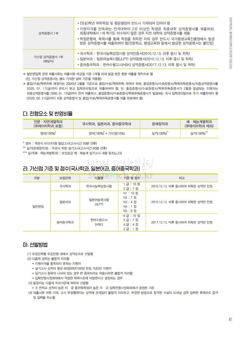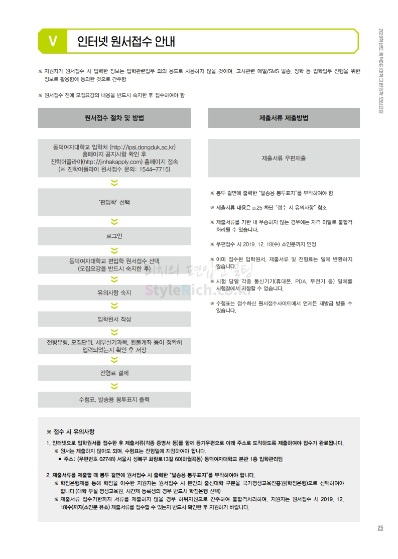 동덕여대 편입 2020학년도 모집요강 간편하게 보자 2019.12.12 01:42 편입 모집요강/2020학년도 모집요강 2020학년도 동덕여대 편입 모집요강을 간편하게 확인하세요. PC와 모바일 모두에서 이미지를 클릭(터치) 후 이미지의 좌우측을 각각 클릭하면 모집요강 순서를 앞뒤로 넘길 수 있습니다. 좌측 클릭(터치)는 이전 페이지, 우측 클릭(터치)는 다음 페이지입니다. * 최종 모집요강 발표 후에도 일부 내용이 변경될 수 있으니 지원 전 반드시 동덕여대 입학처의 모집요강을 확인하시기 바랍니다. 2020학년도 동덕여대 편입 모집요강 다운받기 2020_tc_new.pdf 0.86MB <출처: 동덕여대 홈페이지> 홍보대사 동그라미의 시험 기간 V-LOG 공유하기 게시글 관리 리치의 편입컨설팅 저작자표시 비영리 변경금지 (새창열림) '편입 모집요강 > 2020학년도 모집요강' 카테고리의 다른 글 서울과학기술대 편입 2020학년도 모집요강 간편하게 보자 (0) 2019.12.12 동국대 편입 2020학년도 모집요강 간편하게 보자 (0) 2019.12.12 가톨릭대 편입 2020학년도 모집요강 간편하게 보자 (0) 2019.12.12 아주대 편입 2020학년도 모집요강 간편하게 보자 (0) 2019.12.11 광운대 편입 2020학년도 모집요강 간편하게 보자 (0) 2019.12.11 댓글 공유하기 다른 글 댓글 이 글 공유하기 구독하기 구독하기 카카오톡 카카오톡 라인 라인 트위터 트위터 Facebook Facebook 카카오스토리 카카오스토리 밴드 밴드 네이버 블로그 네이버 블로그 Pocket Pocket Evernote Evernote 다른 글 서울과학기술대 편입 2020학년도 모집요강 간편하게 보자 서울과학기술대 편입 2020학년도 모집요강 간편하게 보자 2019.12.12 동국대 편입 2020학년도 모집요강 간편하게 보자 동국대 편입 2020학년도 모집요강 간편하게 보자 2019.12.12 가톨릭대 편입 2020학년도 모집요강 간편하게 보자 가톨릭대 편입 2020학년도 모집요강 간편하게 보자 2019.12.12 아주대 편입 2020학년도 모집요강 간편하게 보자 아주대 편입 2020학년도 모집요강 간편하게 보자 2019.12.11 다른 글 더 둘러보기