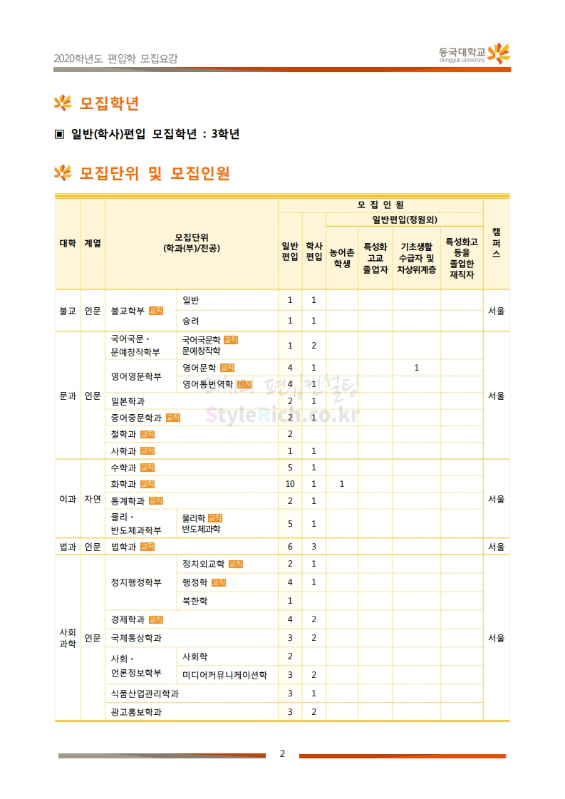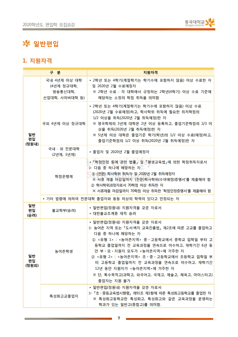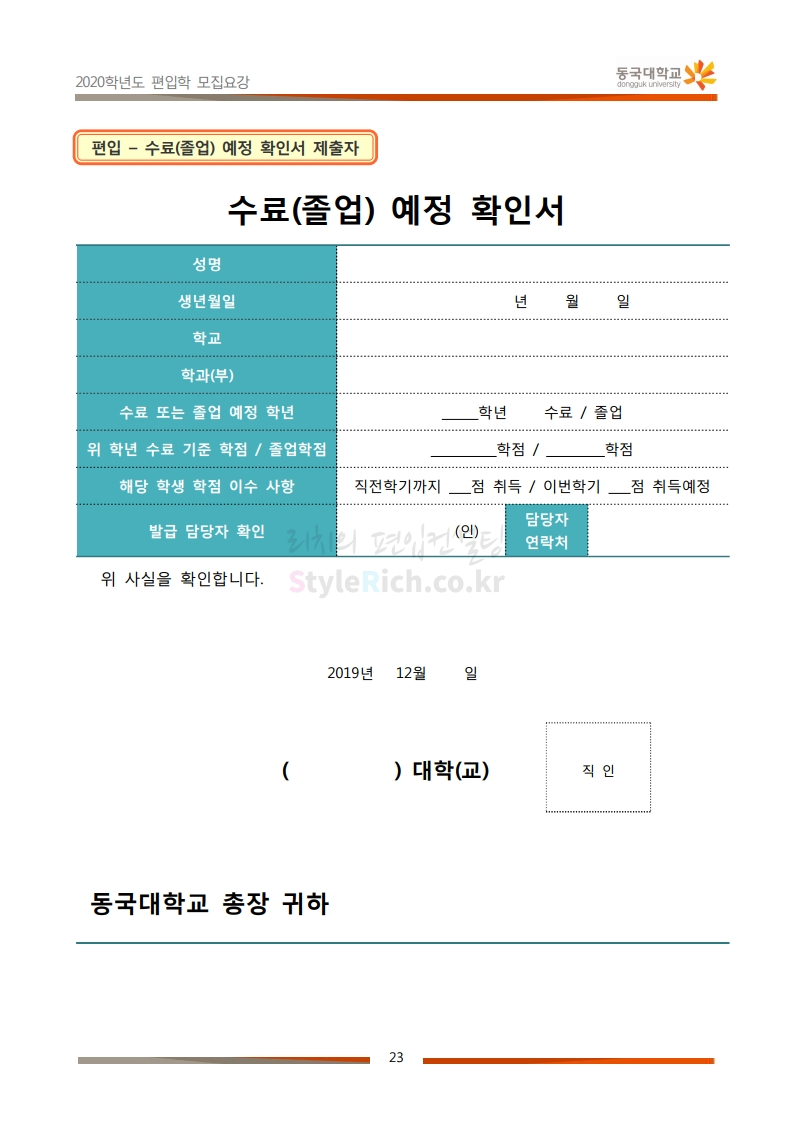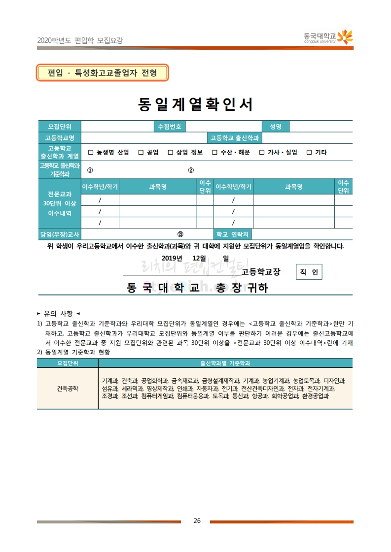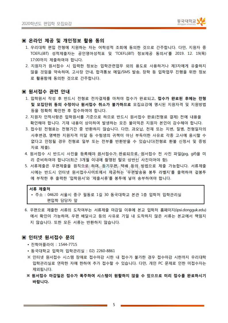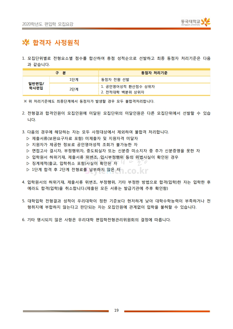 동국대 편입 2020학년도 모집요강 간편하게 보자 2019.12.12 02:07 편입 모집요강/2020학년도 모집요강 2020학년도 동국대 편입 모집요강을 간편하게 확인하세요. PC와 모바일 모두에서 이미지를 클릭(터치) 후 이미지의 좌우측을 각각 클릭하면 모집요강 순서를 앞뒤로 넘길 수 있습니다. 좌측 클릭(터치)는 이전 페이지, 우측 클릭(터치)는 다음 페이지입니다. * 최종 모집요강 발표 후에도 일부 내용이 변경될 수 있으니 지원 전 반드시 동국대 입학처의 모집요강을 확인하시기 바랍니다. 2020학년도 동국대 편입 모집요강 다운받기 2020학년도편입학모집요강(배포용).pdf 1.64MB <출처: 동국대 홈페이지> 동국대의 소통공감 홈페이지를 아시나요? 공유하기 게시글 관리 리치의 편입컨설팅 저작자표시 비영리 변경금지 (새창열림) '편입 모집요강 > 2020학년도 모집요강' 카테고리의 다른 글 중앙대 편입 2020학년도 모집요강 간편하게 보자 (0) 2019.12.13 서울과학기술대 편입 2020학년도 모집요강 간편하게 보자 (0) 2019.12.12 동덕여대 편입 2020학년도 모집요강 간편하게 보자 (0) 2019.12.12 가톨릭대 편입 2020학년도 모집요강 간편하게 보자 (0) 2019.12.12 아주대 편입 2020학년도 모집요강 간편하게 보자 (0) 2019.12.11 댓글 공유하기 다른 글 댓글 이 글 공유하기 구독하기 구독하기 카카오톡 카카오톡 라인 라인 트위터 트위터 Facebook Facebook 카카오스토리 카카오스토리 밴드 밴드 네이버 블로그 네이버 블로그 Pocket Pocket Evernote Evernote 다른 글 중앙대 편입 2020학년도 모집요강 간편하게 보자 중앙대 편입 2020학년도 모집요강 간편하게 보자 2019.12.13 서울과학기술대 편입 2020학년도 모집요강 간편하게 보자 서울과학기술대 편입 2020학년도 모집요강 간편하게 보자 2019.12.12 동덕여대 편입 2020학년도 모집요강 간편하게 보자 동덕여대 편입 2020학년도 모집요강 간편하게 보자 2019.12.12 가톨릭대 편입 2020학년도 모집요강 간편하게 보자 가톨릭대 편입 2020학년도 모집요강 간편하게 보자 2019.12.12 다른 글 더 둘러보기