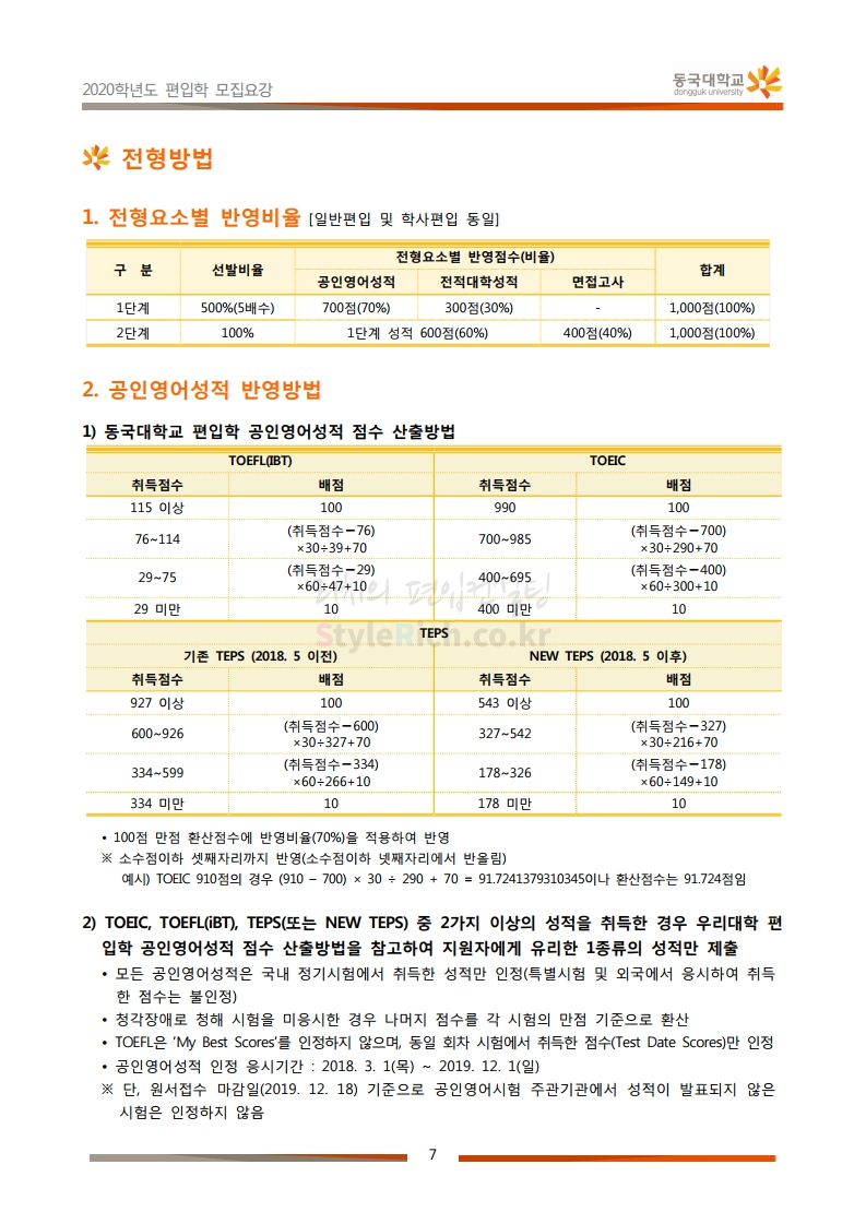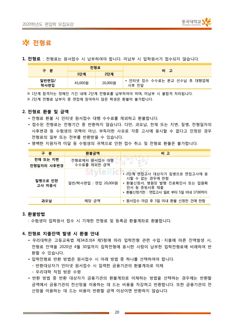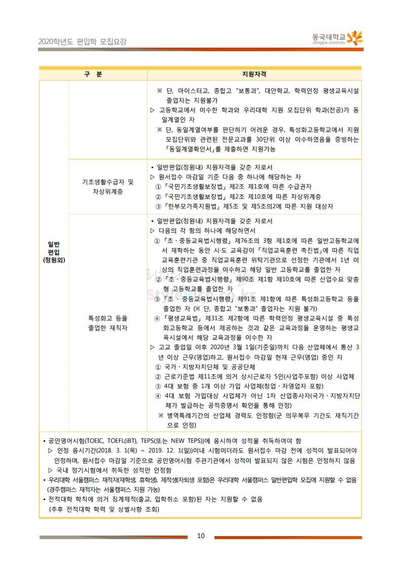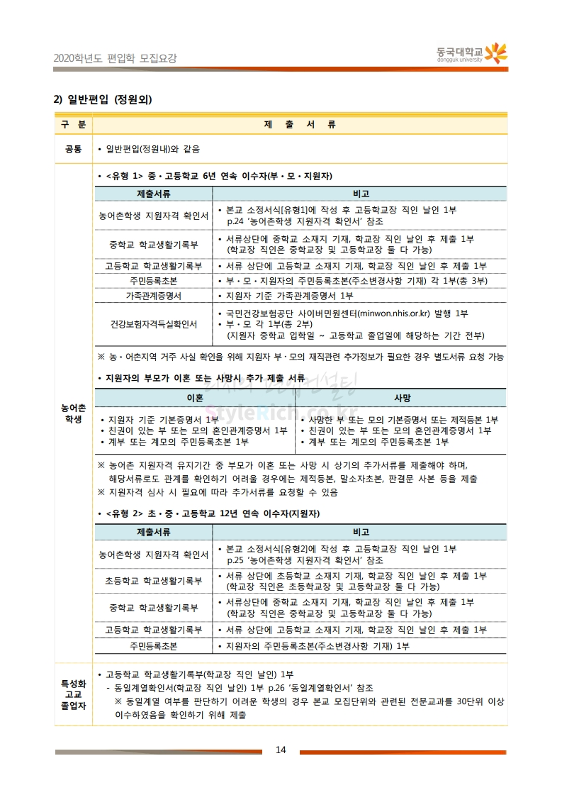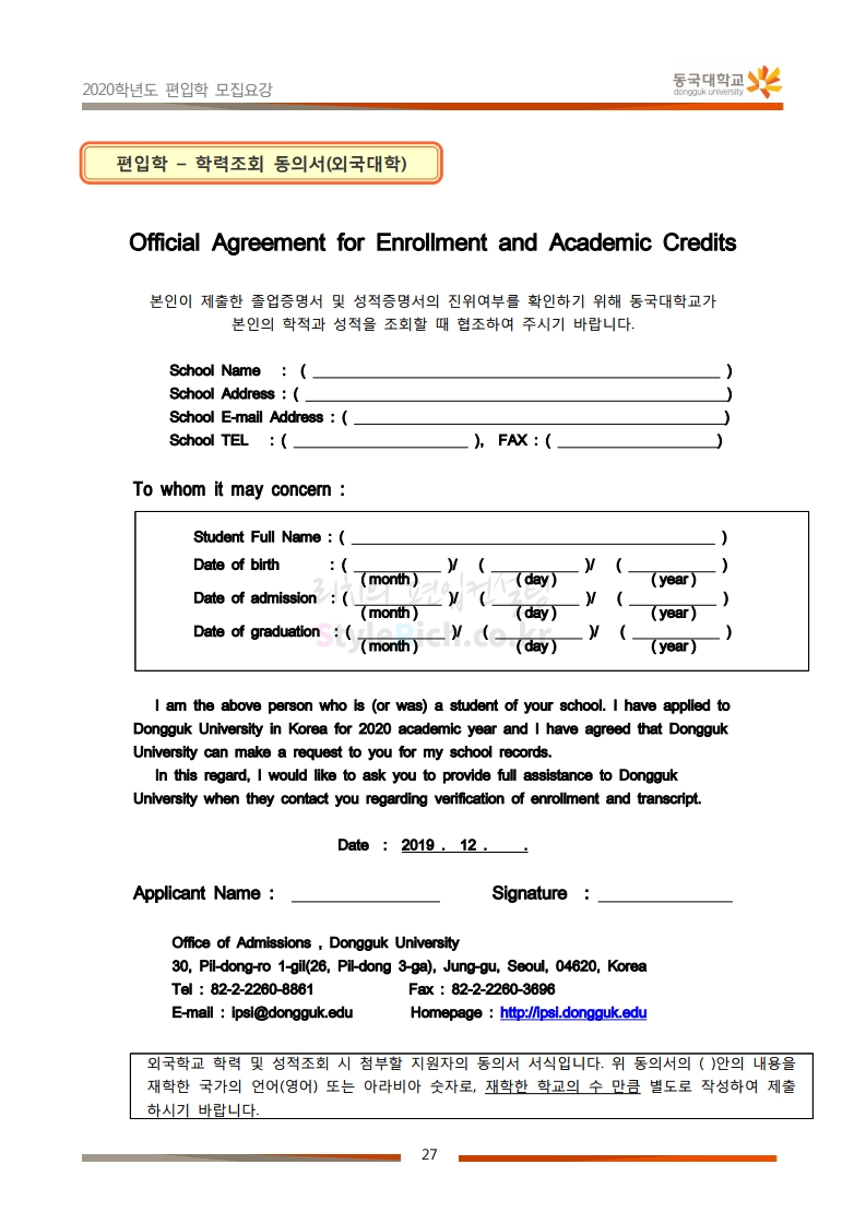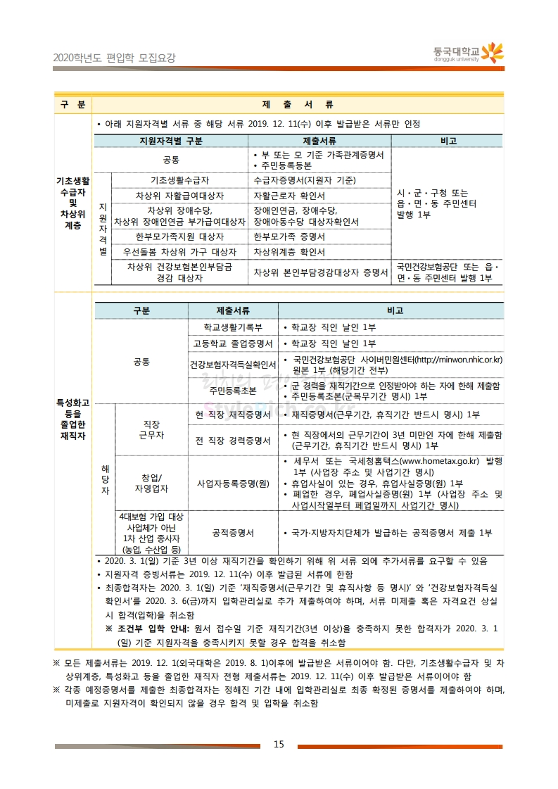 동국대 편입 2020학년도 모집요강 간편하게 보자 2019.12.12 02:07 편입 모집요강/2020학년도 모집요강 2020학년도 동국대 편입 모집요강을 간편하게 확인하세요. PC와 모바일 모두에서 이미지를 클릭(터치) 후 이미지의 좌우측을 각각 클릭하면 모집요강 순서를 앞뒤로 넘길 수 있습니다. 좌측 클릭(터치)는 이전 페이지, 우측 클릭(터치)는 다음 페이지입니다. * 최종 모집요강 발표 후에도 일부 내용이 변경될 수 있으니 지원 전 반드시 동국대 입학처의 모집요강을 확인하시기 바랍니다. 2020학년도 동국대 편입 모집요강 다운받기 2020학년도편입학모집요강(배포용).pdf 1.64MB <출처: 동국대 홈페이지> 동국대의 소통공감 홈페이지를 아시나요? 공유하기 게시글 관리 리치의 편입컨설팅 저작자표시 비영리 변경금지 (새창열림) '편입 모집요강 > 2020학년도 모집요강' 카테고리의 다른 글 중앙대 편입 2020학년도 모집요강 간편하게 보자 (0) 2019.12.13 서울과학기술대 편입 2020학년도 모집요강 간편하게 보자 (0) 2019.12.12 동덕여대 편입 2020학년도 모집요강 간편하게 보자 (0) 2019.12.12 가톨릭대 편입 2020학년도 모집요강 간편하게 보자 (0) 2019.12.12 아주대 편입 2020학년도 모집요강 간편하게 보자 (0) 2019.12.11 댓글 공유하기 다른 글 댓글 이 글 공유하기 구독하기 구독하기 카카오톡 카카오톡 라인 라인 트위터 트위터 Facebook Facebook 카카오스토리 카카오스토리 밴드 밴드 네이버 블로그 네이버 블로그 Pocket Pocket Evernote Evernote 다른 글 중앙대 편입 2020학년도 모집요강 간편하게 보자 중앙대 편입 2020학년도 모집요강 간편하게 보자 2019.12.13 서울과학기술대 편입 2020학년도 모집요강 간편하게 보자 서울과학기술대 편입 2020학년도 모집요강 간편하게 보자 2019.12.12 동덕여대 편입 2020학년도 모집요강 간편하게 보자 동덕여대 편입 2020학년도 모집요강 간편하게 보자 2019.12.12 가톨릭대 편입 2020학년도 모집요강 간편하게 보자 가톨릭대 편입 2020학년도 모집요강 간편하게 보자 2019.12.12 다른 글 더 둘러보기