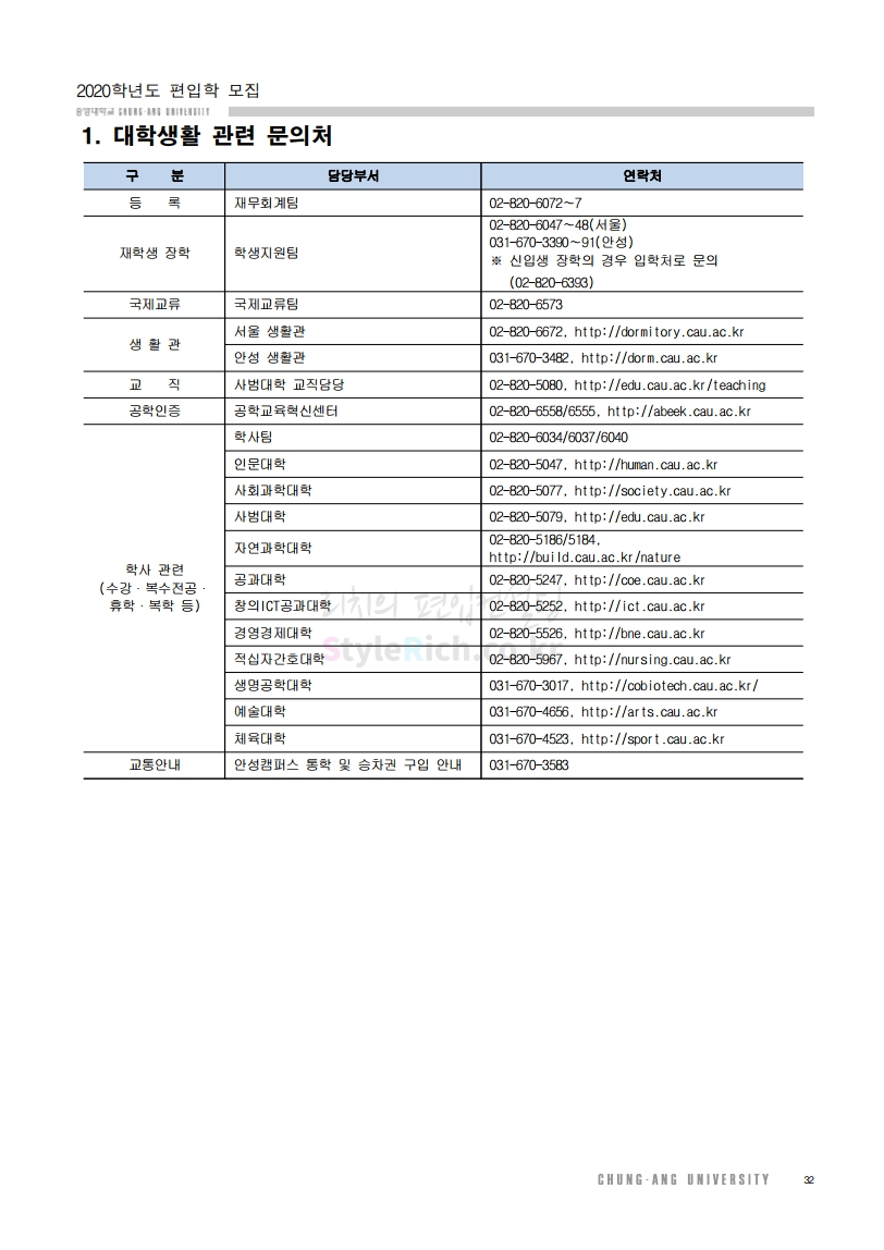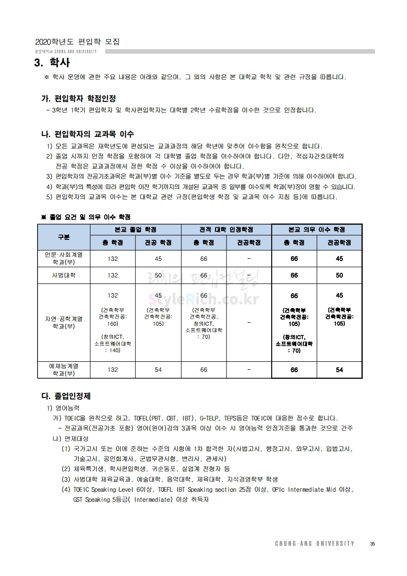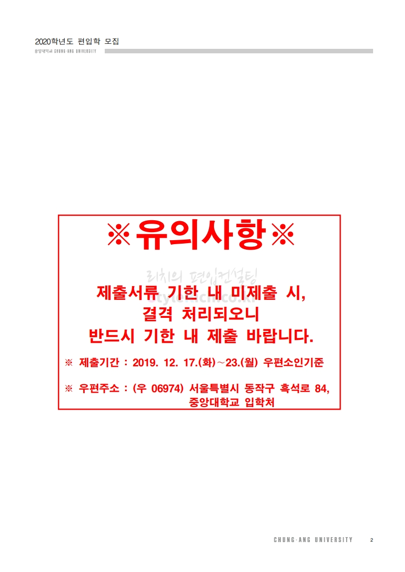 2020학년도 중앙대 편입 모집요강 다운받기