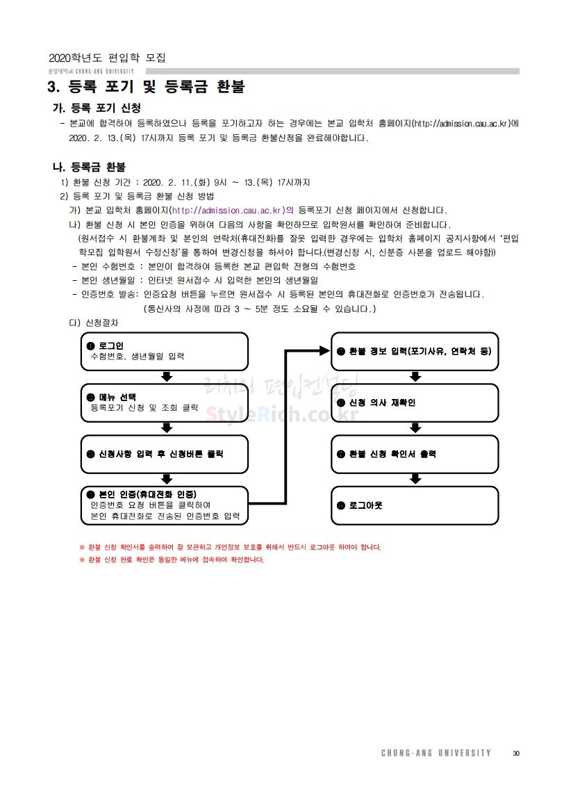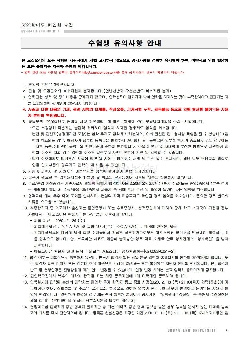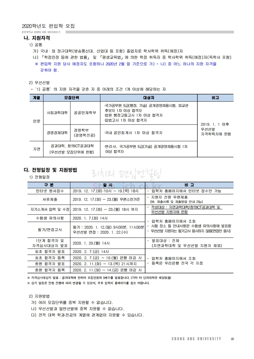 중앙대 편입 2020학년도 모집요강 간편하게 보자
