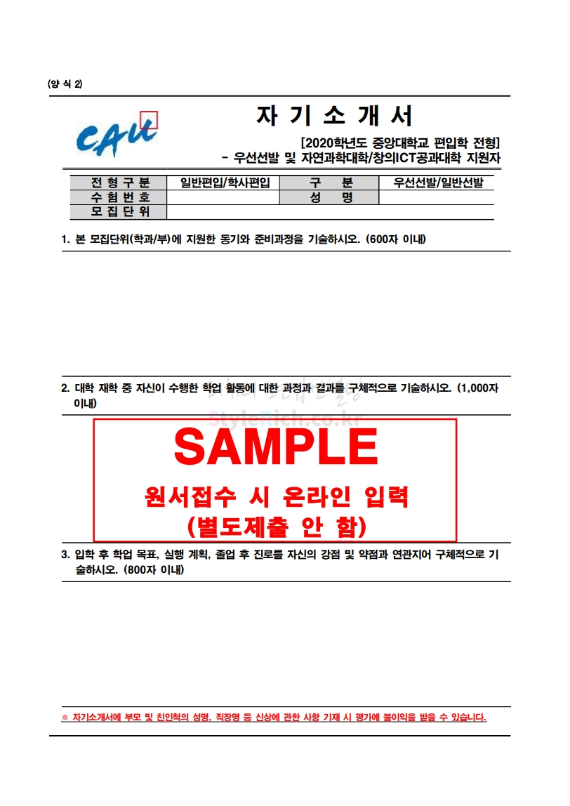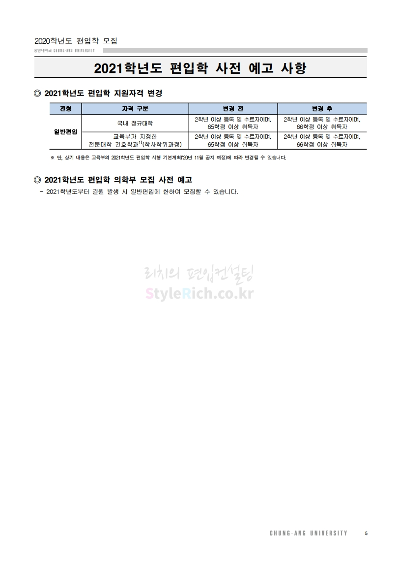 * 최종 모집요강 발표 후에도 일부 내용이 변경될 수 있으니 지원 전 반드시 중앙대 입학처의 모집요강을 확인하시기 바랍니다.