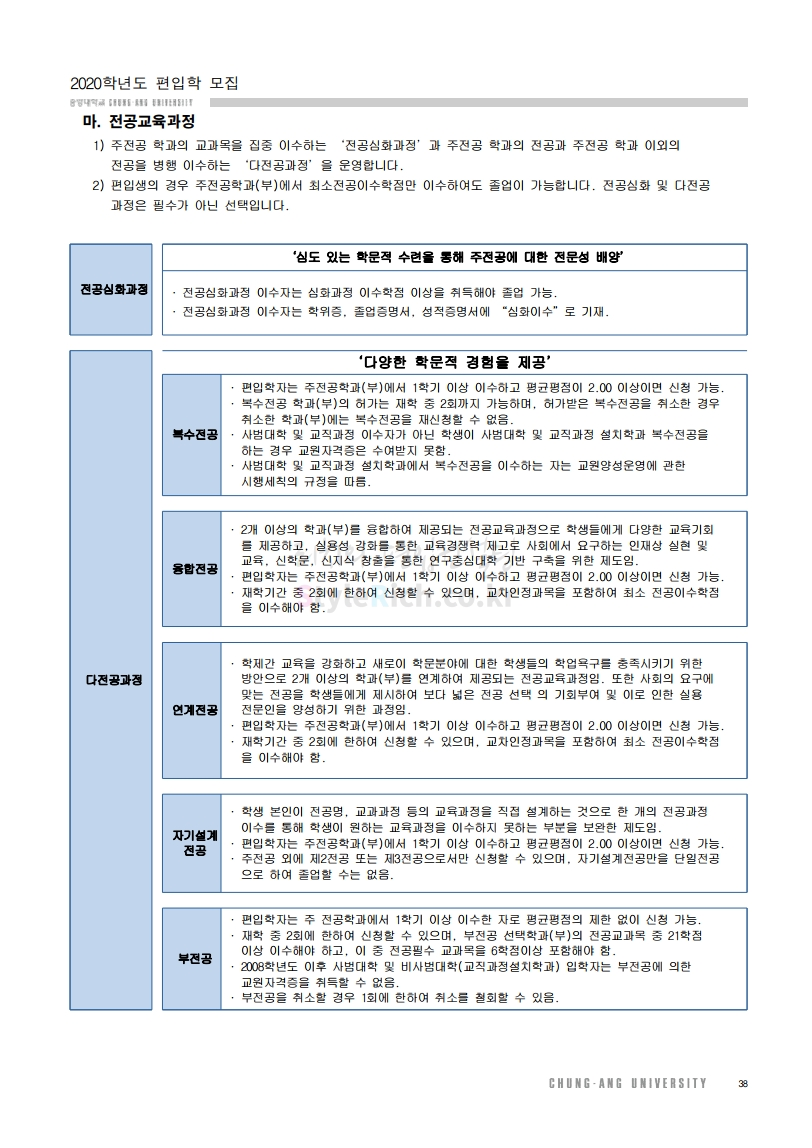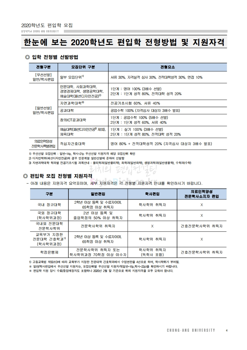 2020학년도 중앙대 편입 모집요강을 간편하게 확인하세요.