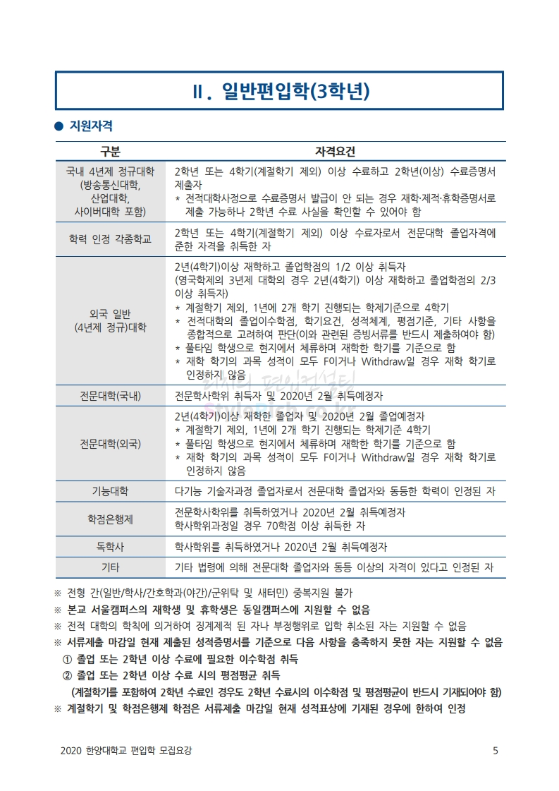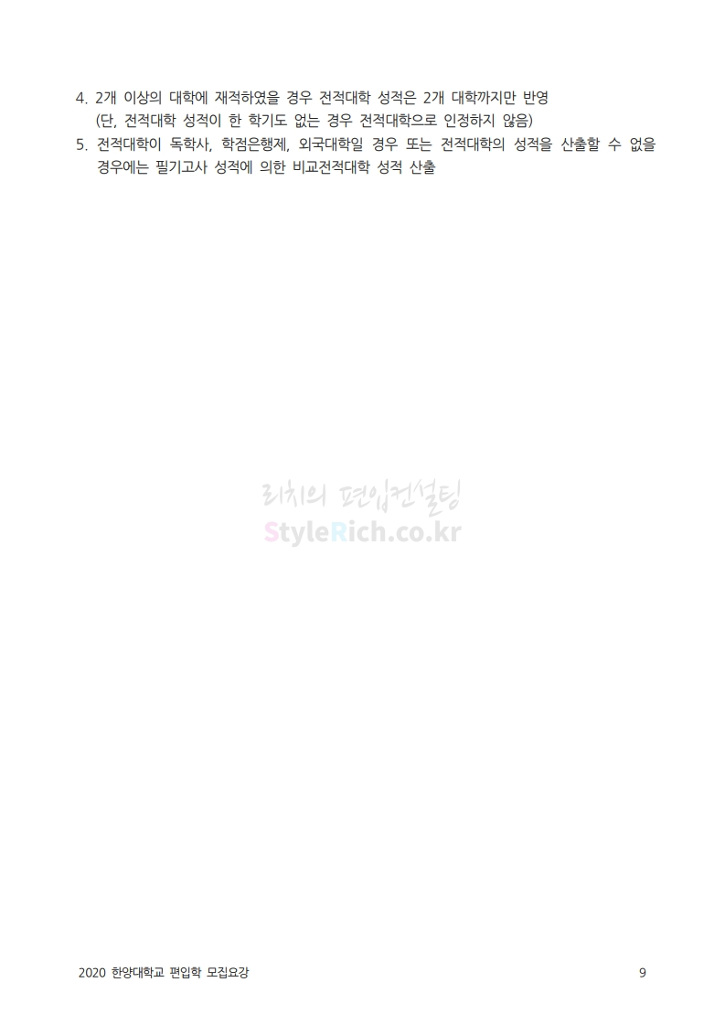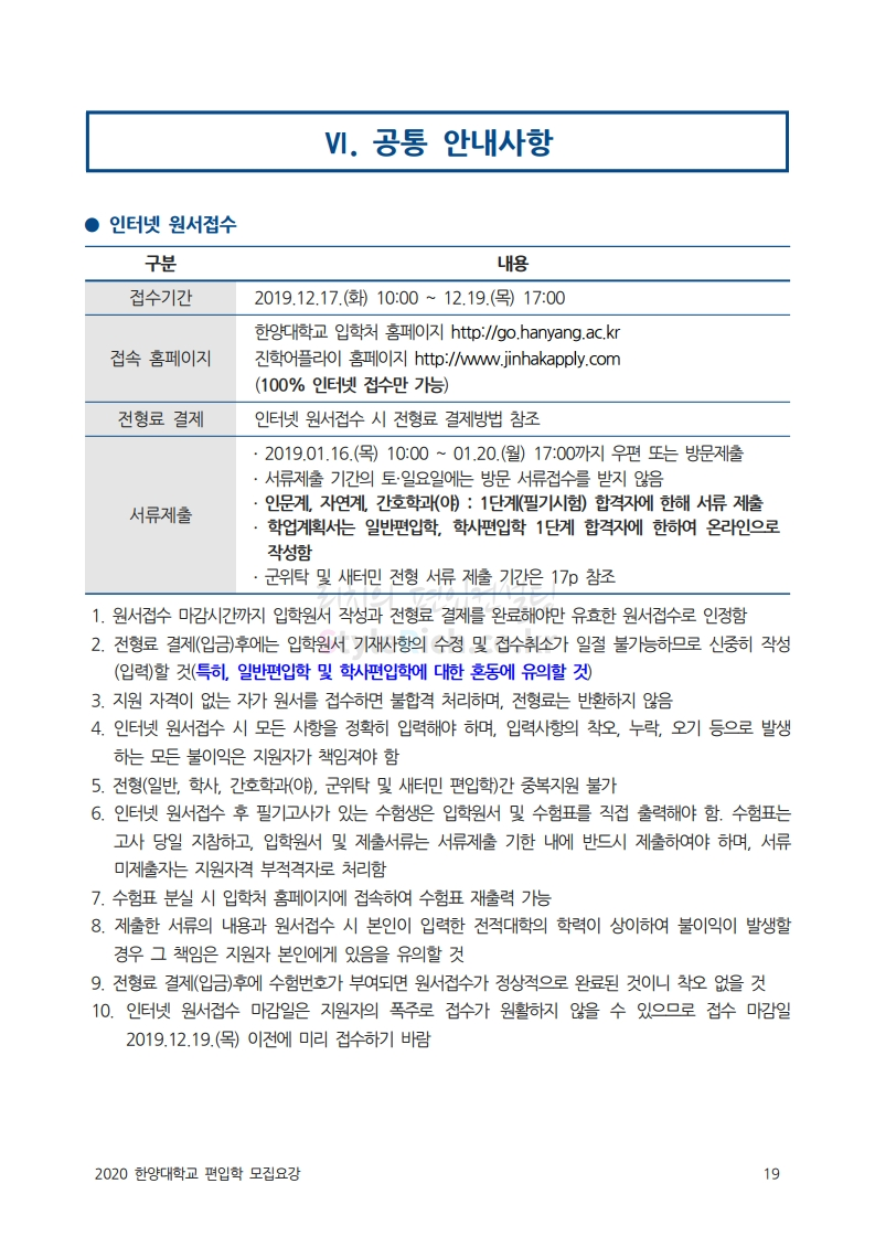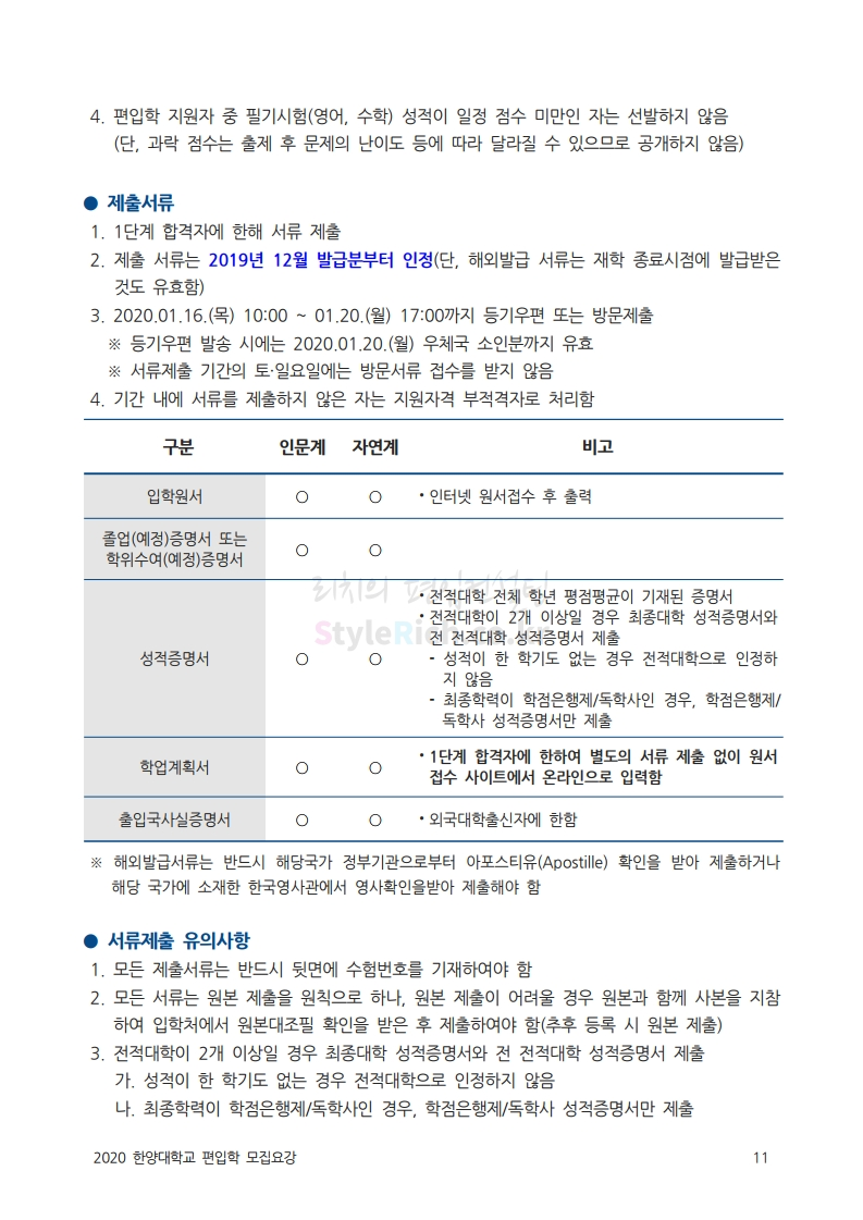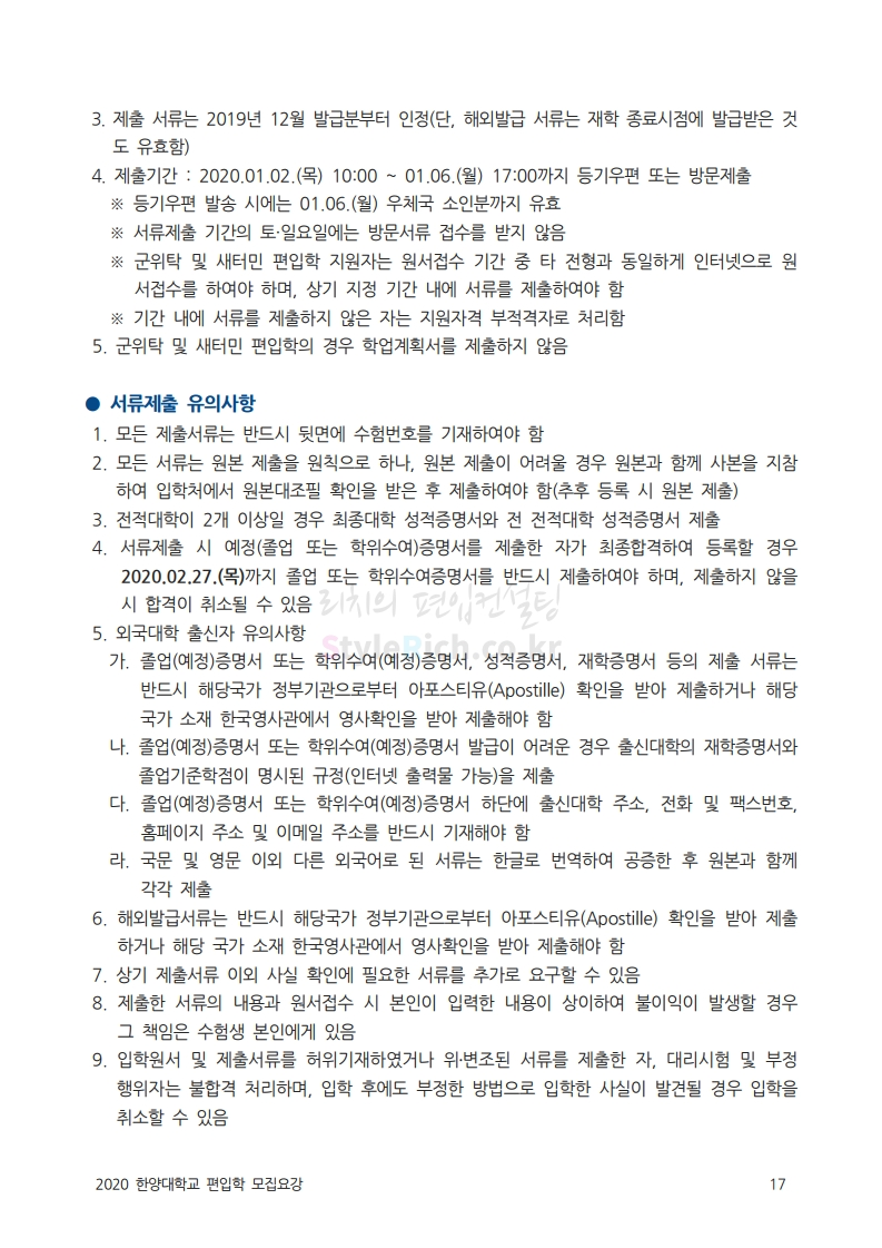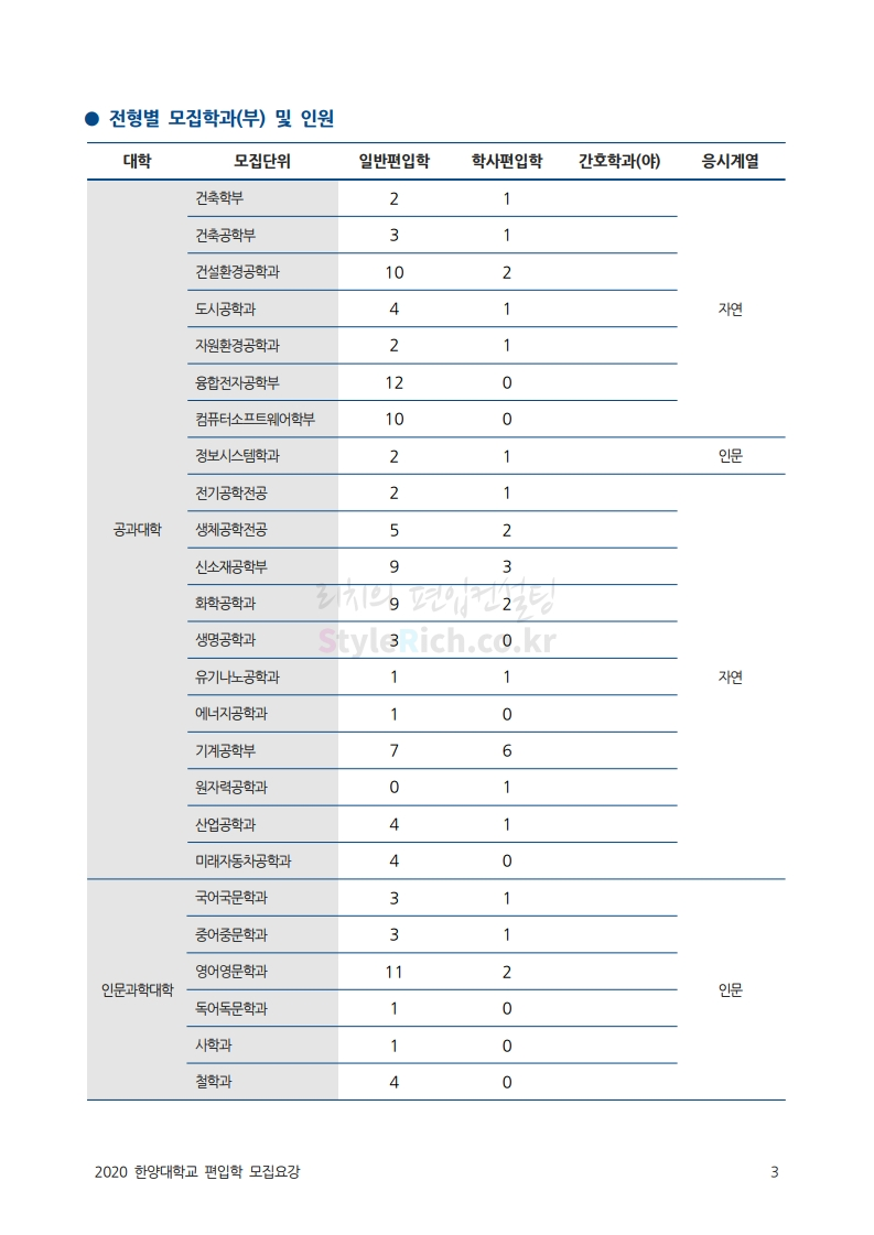 한양대 편입 2020학년도 모집요강 간편하게 보자 2019.12.13 02:52 편입 모집요강/2020학년도 모집요강 2020학년도 한양대 편입 모집요강을 간편하게 확인하세요. PC와 모바일 모두에서 이미지를 클릭(터치) 후 이미지의 좌우측을 각각 클릭하면 모집요강 순서를 앞뒤로 넘길 수 있습니다. 좌측 클릭(터치)는 이전 페이지, 우측 클릭(터치)는 다음 페이지입니다. * 최종 모집요강 발표 후에도 일부 내용이 변경될 수 있으니 지원 전 반드시 한양대 입학처의 모집요강을 확인하시기 바랍니다. 2020학년도 한양대 편입 모집요강 다운받기 93831d81-fbc9-4f73-8a47-82bbc166ad3c.pdf 0.81MB <출처: 한양대 홈페이지> 2019 한양대학교 홍보영상 공유하기 게시글 관리 리치의 편입컨설팅 저작자표시 비영리 변경금지 (새창열림) '편입 모집요강 > 2020학년도 모집요강' 카테고리의 다른 글 세종대 편입 2020학년도 모집요강 간편하게 보자 (0) 2019.12.18 숭실대 편입 2020학년도 모집요강 간편하게 보자 (0) 2019.12.18 중앙대 편입 2020학년도 모집요강 간편하게 보자 (0) 2019.12.13 서울과학기술대 편입 2020학년도 모집요강 간편하게 보자 (0) 2019.12.12 동국대 편입 2020학년도 모집요강 간편하게 보자 (0) 2019.12.12 댓글 공유하기 다른 글 댓글 이 글 공유하기 구독하기 구독하기 카카오톡 카카오톡 라인 라인 트위터 트위터 Facebook Facebook 카카오스토리 카카오스토리 밴드 밴드 네이버 블로그 네이버 블로그 Pocket Pocket Evernote Evernote 다른 글 세종대 편입 2020학년도 모집요강 간편하게 보자 세종대 편입 2020학년도 모집요강 간편하게 보자 2019.12.18 숭실대 편입 2020학년도 모집요강 간편하게 보자 숭실대 편입 2020학년도 모집요강 간편하게 보자 2019.12.18 중앙대 편입 2020학년도 모집요강 간편하게 보자 중앙대 편입 2020학년도 모집요강 간편하게 보자 2019.12.13 서울과학기술대 편입 2020학년도 모집요강 간편하게 보자 서울과학기술대 편입 2020학년도 모집요강 간편하게 보자 2019.12.12 다른 글 더 둘러보기
