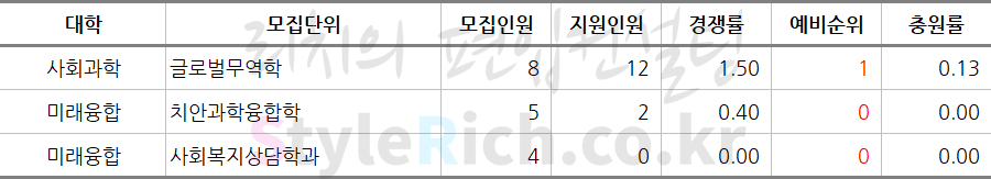 * 모집단위는 인문, 자연, 예체능으로 분류 후 추가합격이 많은 순으로 정렬.