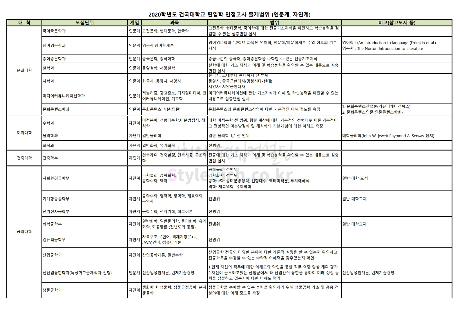 건국대 편입 2020학년도 면접고사 출제범위를 알아보자 2019.12.21 01:18 편입 모집요강/2020학년도 모집요강 2020학년도 건국대 편입 면접고사 출제범위는 다음과 같습니다. 2020학년도 건국대 편입 면접고사 출제범위 다운받기 2020학년도+편입학+면접고사+출제범위.pdf 0.13MB <출처: 건국대 홈페이지> [기숙사 LIFE] #건대#기숙사 생이 알려주는 🏢쿨하우스🏢의 모든 것‼ 공유하기 게시글 관리 리치의 편입컨설팅 저작자표시 비영리 변경금지 (새창열림) '편입 모집요강 > 2020학년도 모집요강' 카테고리의 다른 글 상명대 편입 2020학년도 모집요강 간편하게 보자 (0) 2019.12.23 덕성여대 편입 2020학년도 모집요강 간편하게 보자 (0) 2019.12.21 서강대 편입 2020학년도 자연계열 필기시험(수학) 참고분야를 알아보자 (0) 2019.12.21 성균관대 편입 2020학년도 모집요강 간편하게 보자 (0) 2019.12.20 삼육대 편입 2020학년도 모집요강 간편하게 보자 (0) 2019.12.20 댓글 공유하기 다른 글 댓글 이 글 공유하기 구독하기 구독하기 카카오톡 카카오톡 라인 라인 트위터 트위터 Facebook Facebook 카카오스토리 카카오스토리 밴드 밴드 네이버 블로그 네이버 블로그 Pocket Pocket Evernote Evernote 다른 글 상명대 편입 2020학년도 모집요강 간편하게 보자 상명대 편입 2020학년도 모집요강 간편하게 보자 2019.12.23 덕성여대 편입 2020학년도 모집요강 간편하게 보자 덕성여대 편입 2020학년도 모집요강 간편하게 보자 2019.12.21 서강대 편입 2020학년도 자연계열 필기시험(수학) 참고분야를 알아보자 서강대 편입 2020학년도 자연계열 필기시험(수학) 참고분야를 알아보자 2019.12.21 성균관대 편입 2020학년도 모집요강 간편하게 보자 성균관대 편입 2020학년도 모집요강 간편하게 보자 2019.12.20 다른 글 더 둘러보기