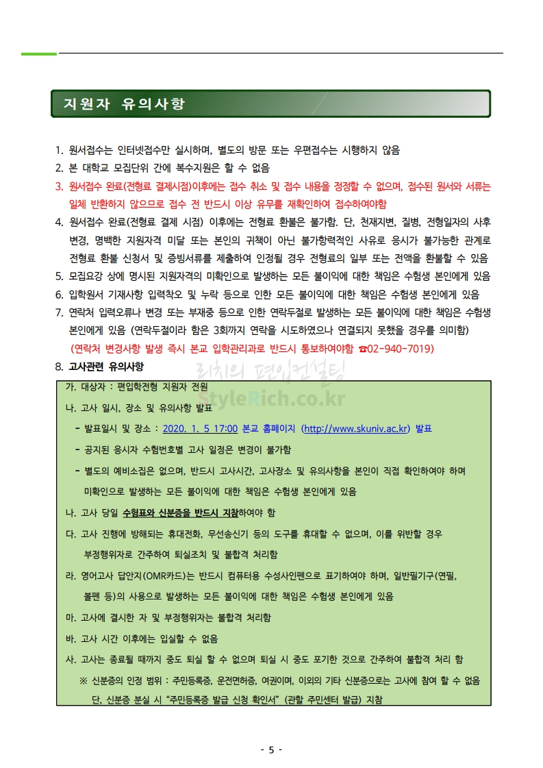 서경대 편입 2020학년도 모집요강 간편하게 보자 2019.12.25 02:30 편입 모집요강/2020학년도 모집요강 2020학년도 서경대 편입 모집요강을 간편하게 확인하세요. PC와 모바일 모두에서 이미지를 클릭(터치) 후 이미지의 좌우측을 각각 클릭하면 모집요강 순서를 앞뒤로 넘길 수 있습니다. 좌측 클릭(터치)는 이전 페이지, 우측 클릭(터치)는 다음 페이지입니다. * 최종 모집요강 발표 후에도 일부 내용이 변경될 수 있으니 지원 전 반드시 서경대 입학처의 모집요강을 확인하시기 바랍니다. <출처: 서경대 홈페이지> 서경대학교 TV CF 광고(15초) | 실용이 최고의 가치다 공유하기 게시글 관리 리치의 편입컨설팅 저작자표시 비영리 변경금지 (새창열림) '편입 모집요강 > 2020학년도 모집요강' 카테고리의 다른 글 성신여대 편입 2020학년도 모집요강 간편하게 보자 (0) 2019.12.25 서울여대 편입 2020학년도 모집요강 간편하게 보자 (0) 2019.12.25 상명대(천안) 편입 2020학년도 모집요강 간편하게 보자 (0) 2019.12.24 한성대 편입 2020학년도 모집요강 간편하게 보자 (0) 2019.12.23 상명대 편입 2020학년도 모집요강 간편하게 보자 (0) 2019.12.23 댓글 공유하기 다른 글 댓글 이 글 공유하기 구독하기 구독하기 카카오톡 카카오톡 라인 라인 트위터 트위터 Facebook Facebook 카카오스토리 카카오스토리 밴드 밴드 네이버 블로그 네이버 블로그 Pocket Pocket Evernote Evernote 다른 글 성신여대 편입 2020학년도 모집요강 간편하게 보자 성신여대 편입 2020학년도 모집요강 간편하게 보자 2019.12.25 서울여대 편입 2020학년도 모집요강 간편하게 보자 서울여대 편입 2020학년도 모집요강 간편하게 보자 2019.12.25 상명대(천안) 편입 2020학년도 모집요강 간편하게 보자 상명대(천안) 편입 2020학년도 모집요강 간편하게 보자 2019.12.24 한성대 편입 2020학년도 모집요강 간편하게 보자 한성대 편입 2020학년도 모집요강 간편하게 보자 2019.12.23 다른 글 더 둘러보기