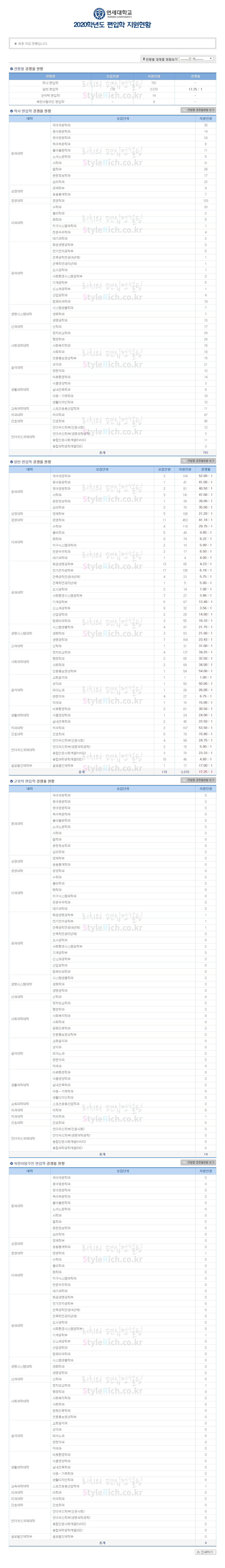 2020학년도 연세대 편입 경쟁률을 살펴보겠습니다.