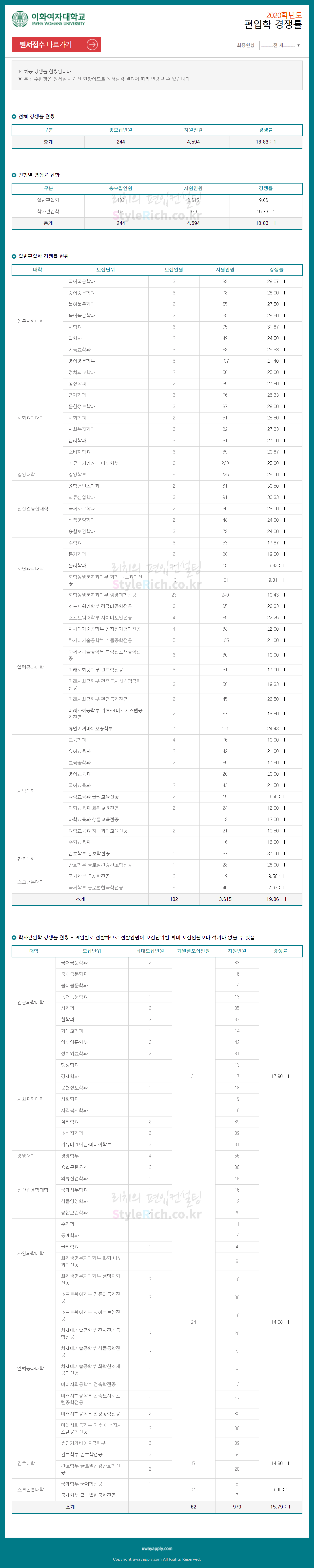 2020학년도 이화여대 편입 경쟁률