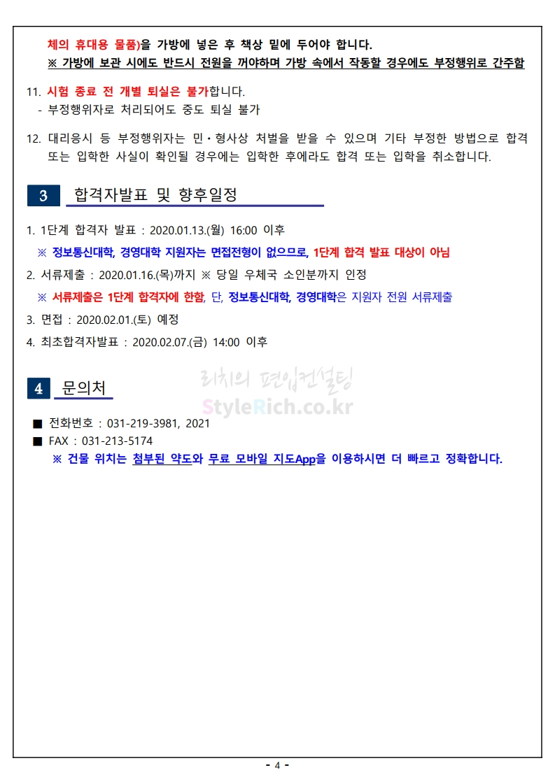 2020학년도 아주대 편입 필기고사 유의사항 04