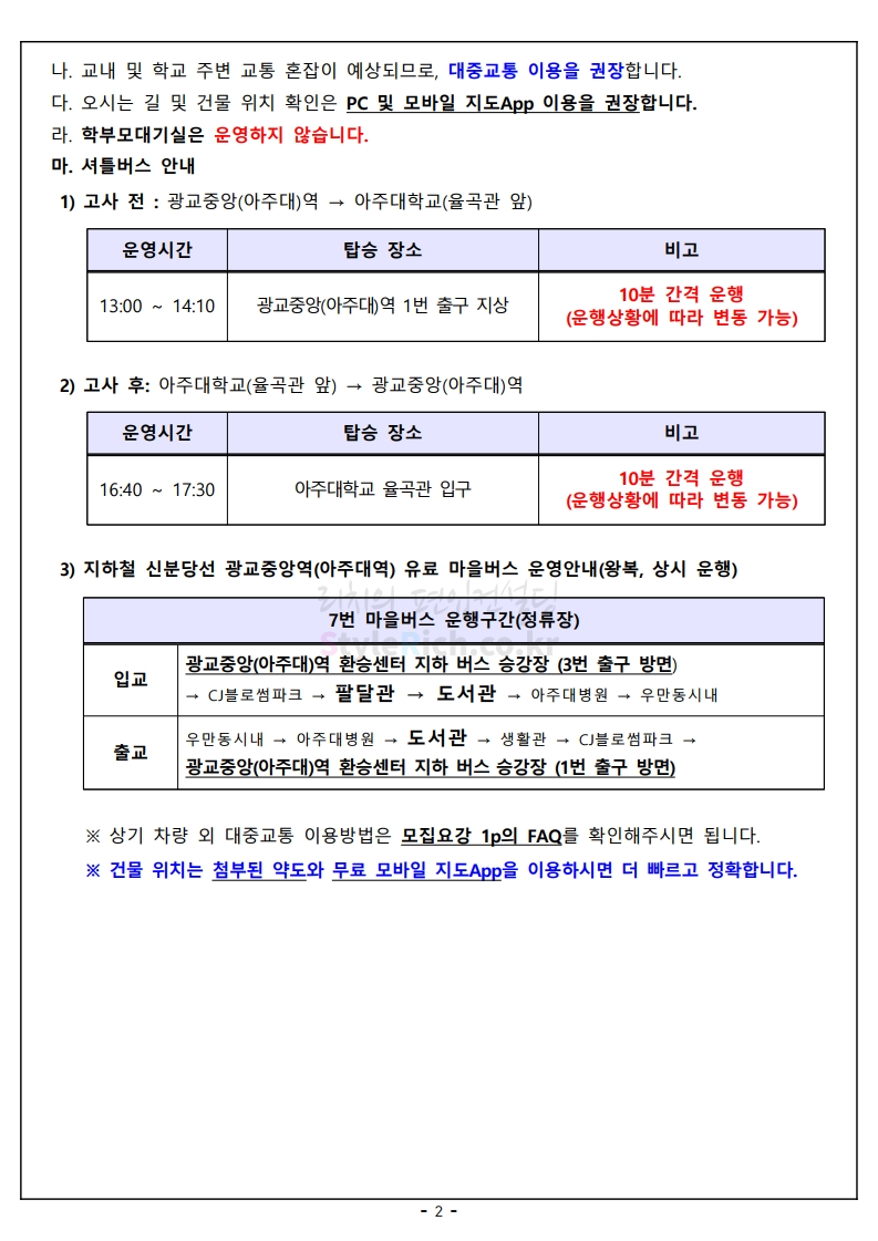 ※ 내용 일부가 변경되거나 오표기가 있을 수 있으므로 시험 전 반드시 아주대 입학처 홈페이지에서 최종적으로 확인 바랍니다.