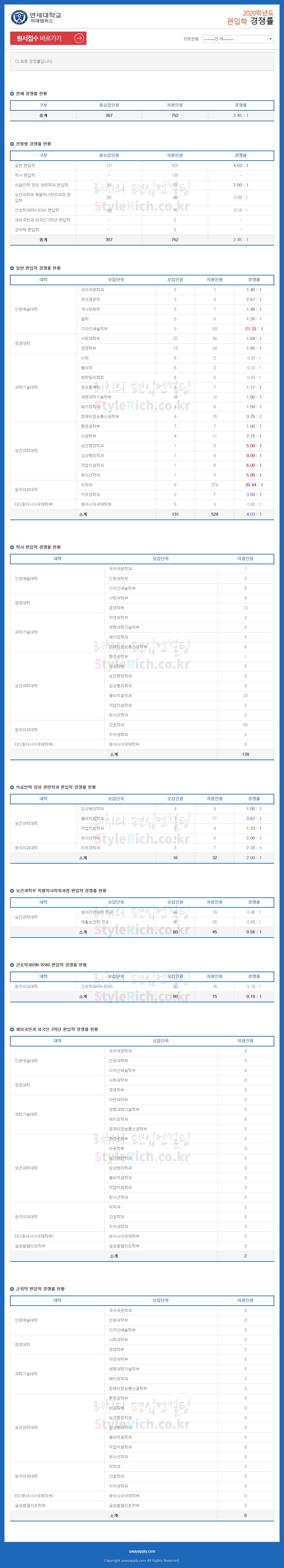 2020학년도 연세대(미래) 편입 경쟁률