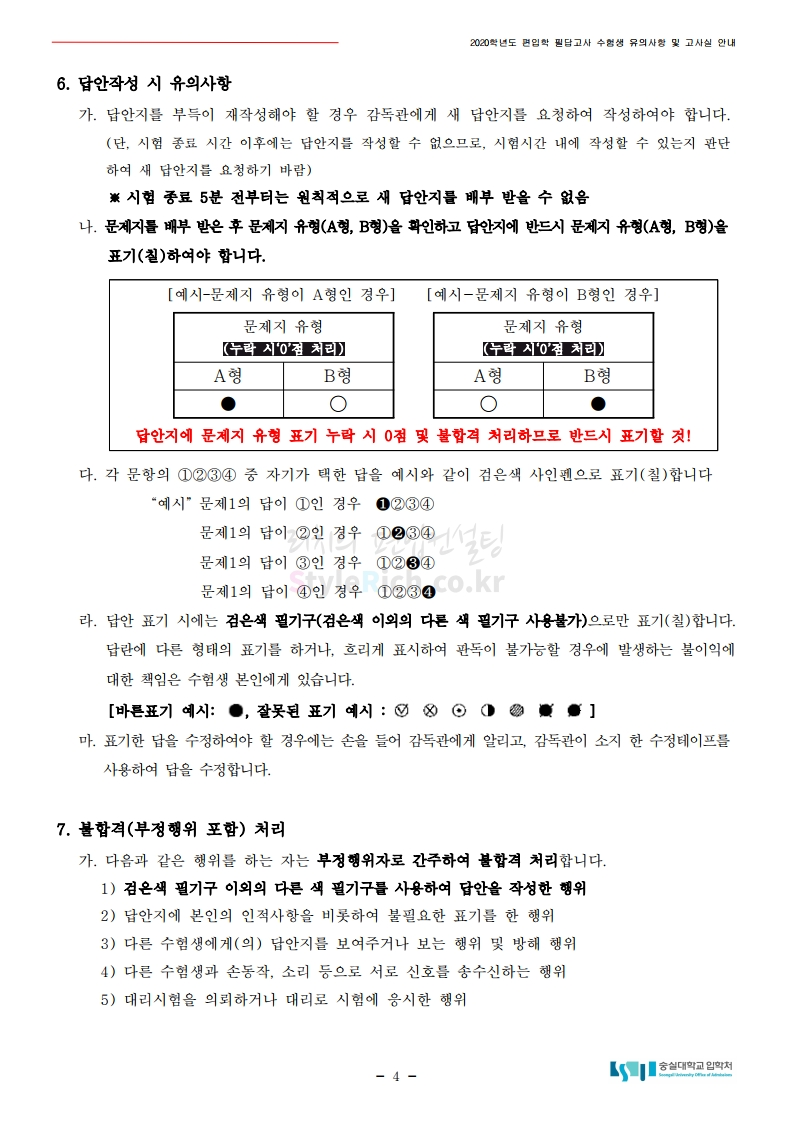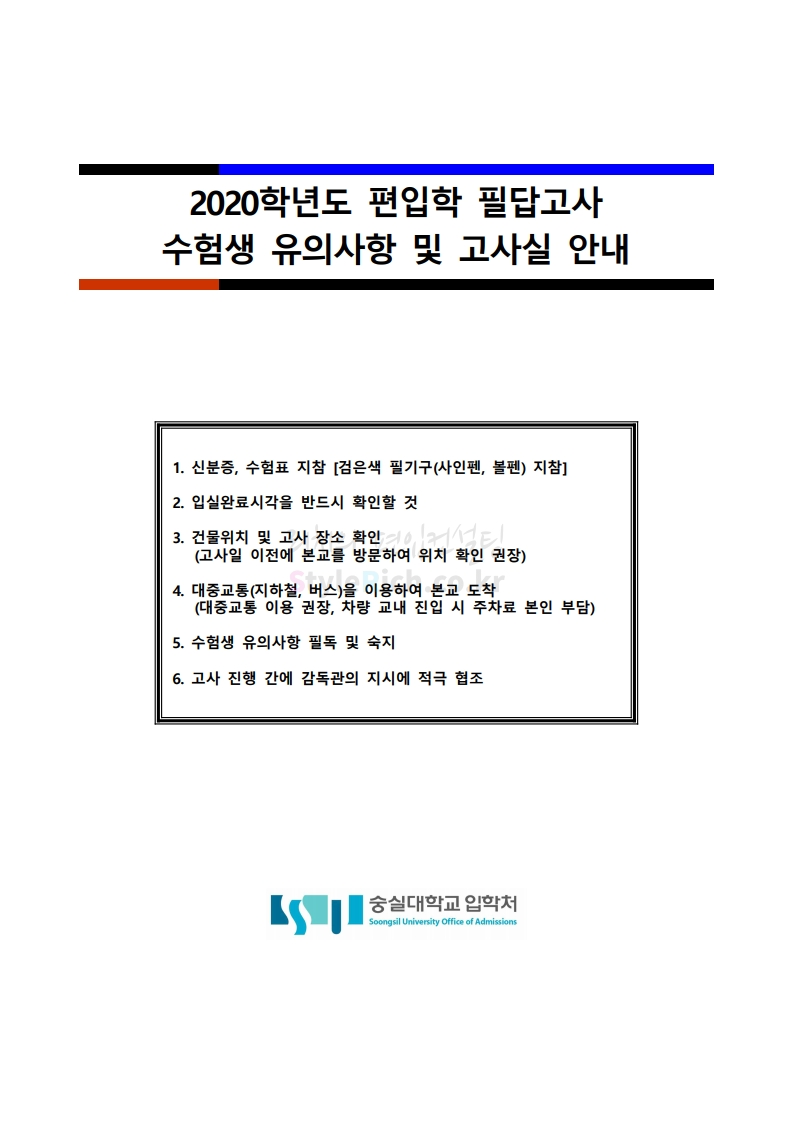 2020학년도 숭실대 편입 필기고사 유의사항 06