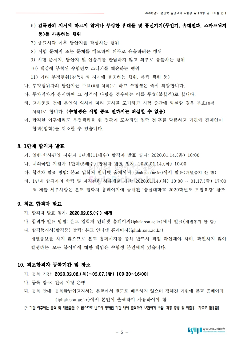2020학년도 숭실대 편입 필기고사 유의사항 05