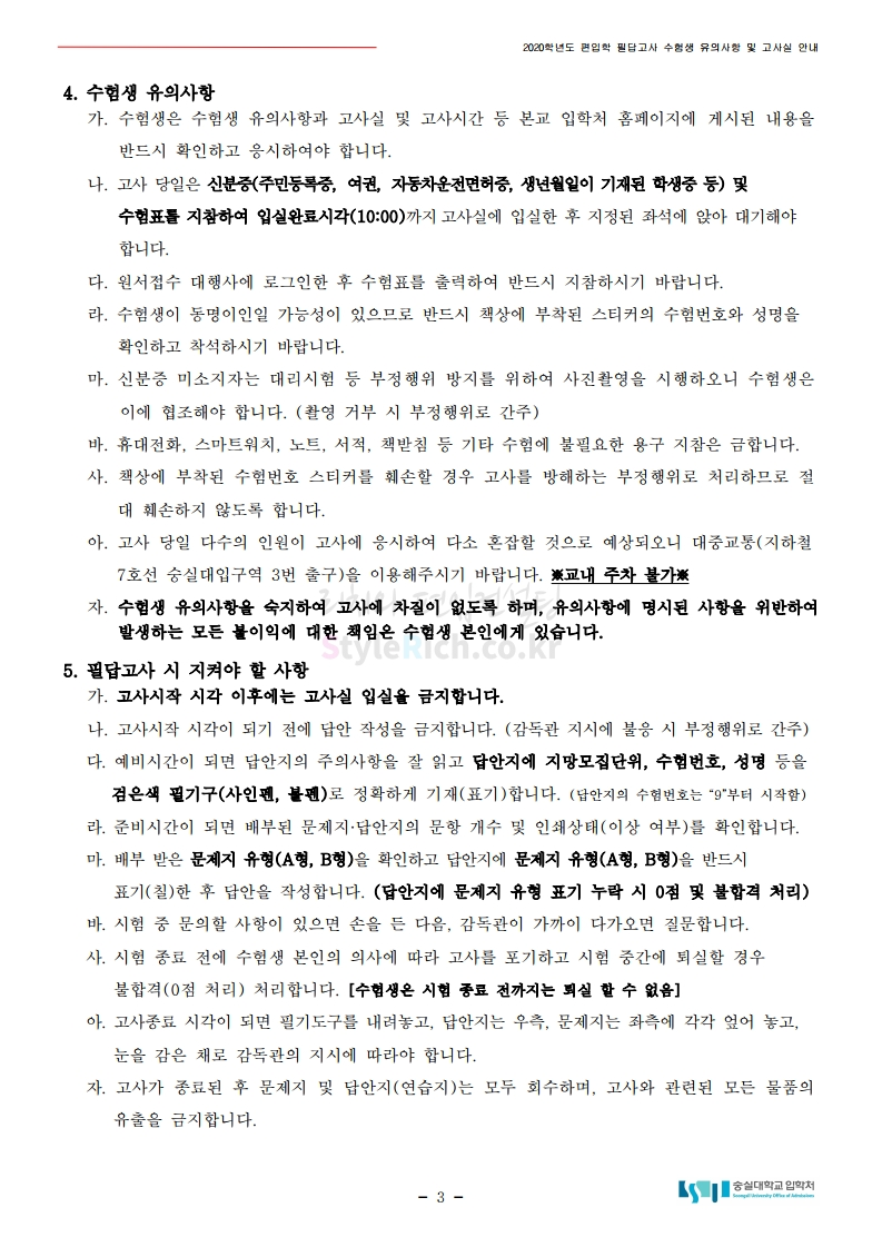 2020학년도 숭실대 편입 필기고사 유의사항 03