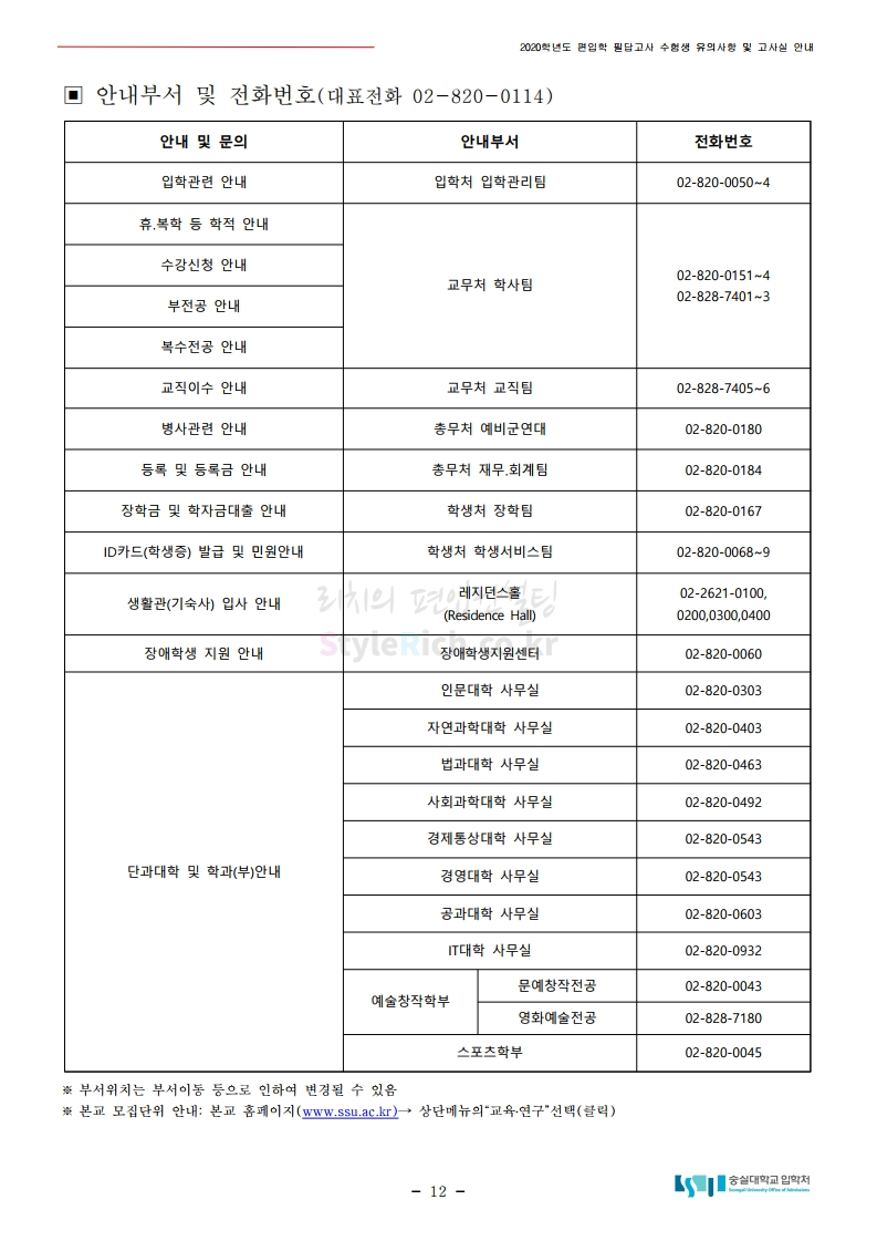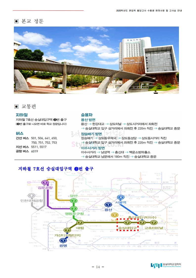 2020학년도 숭실대 편입 필기고사 유의사항 07