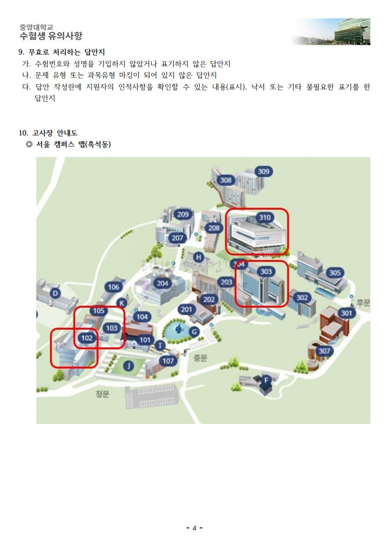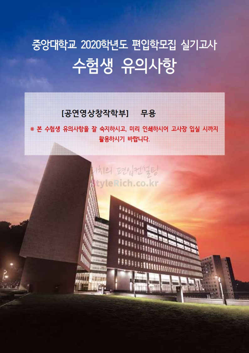 ※ 내용 일부가 변경되거나 오표기가 있을 수 있으므로 시험 전 반드시 중앙대 입학처 홈페이지에서 최종적으로 확인 바랍니다.