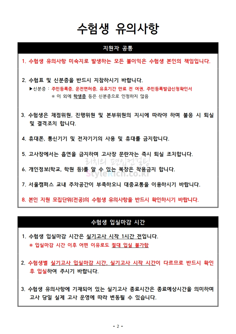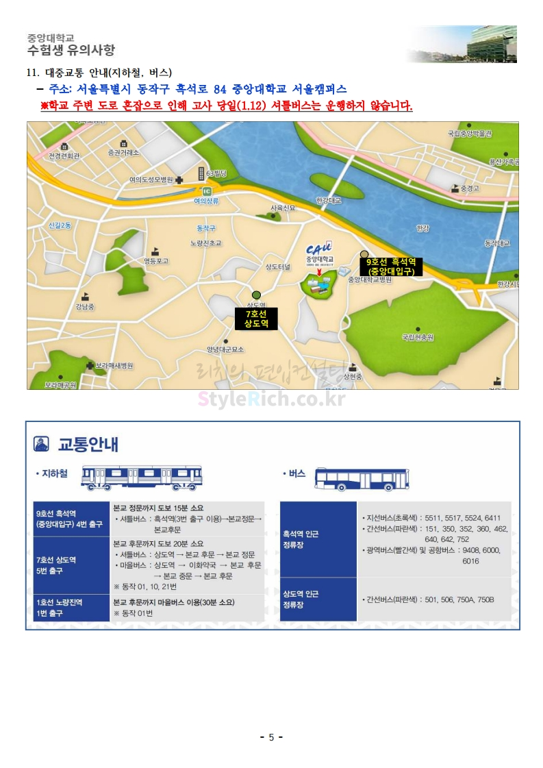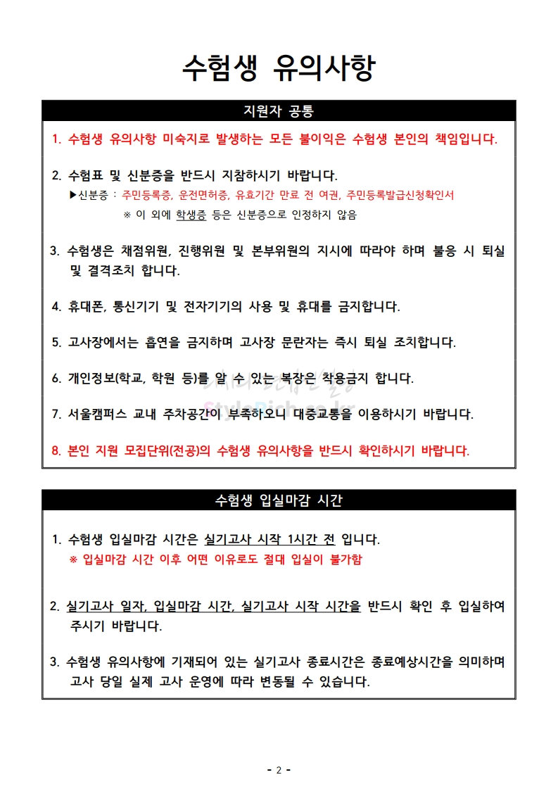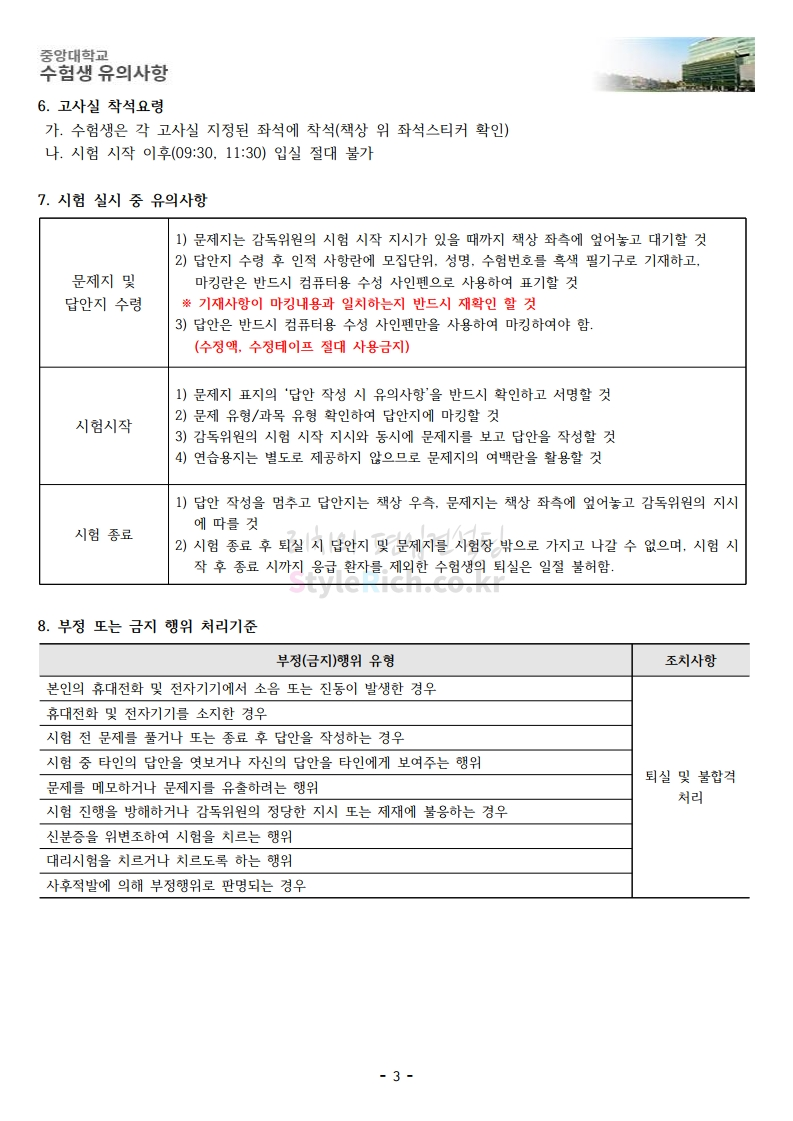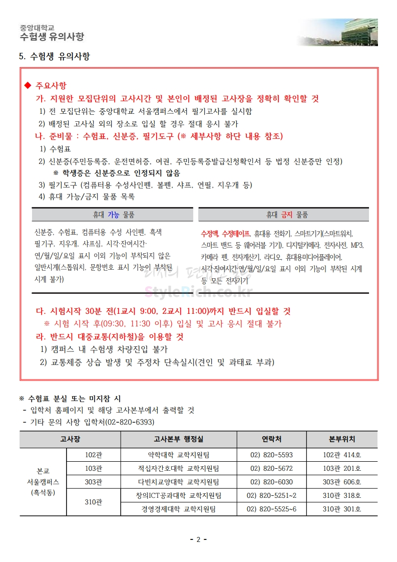 ※ 내용 일부가 변경되거나 오표기가 있을 수 있으므로 시험 전 반드시 중앙대 입학처 홈페이지에서 최종적으로 확인 바랍니다.