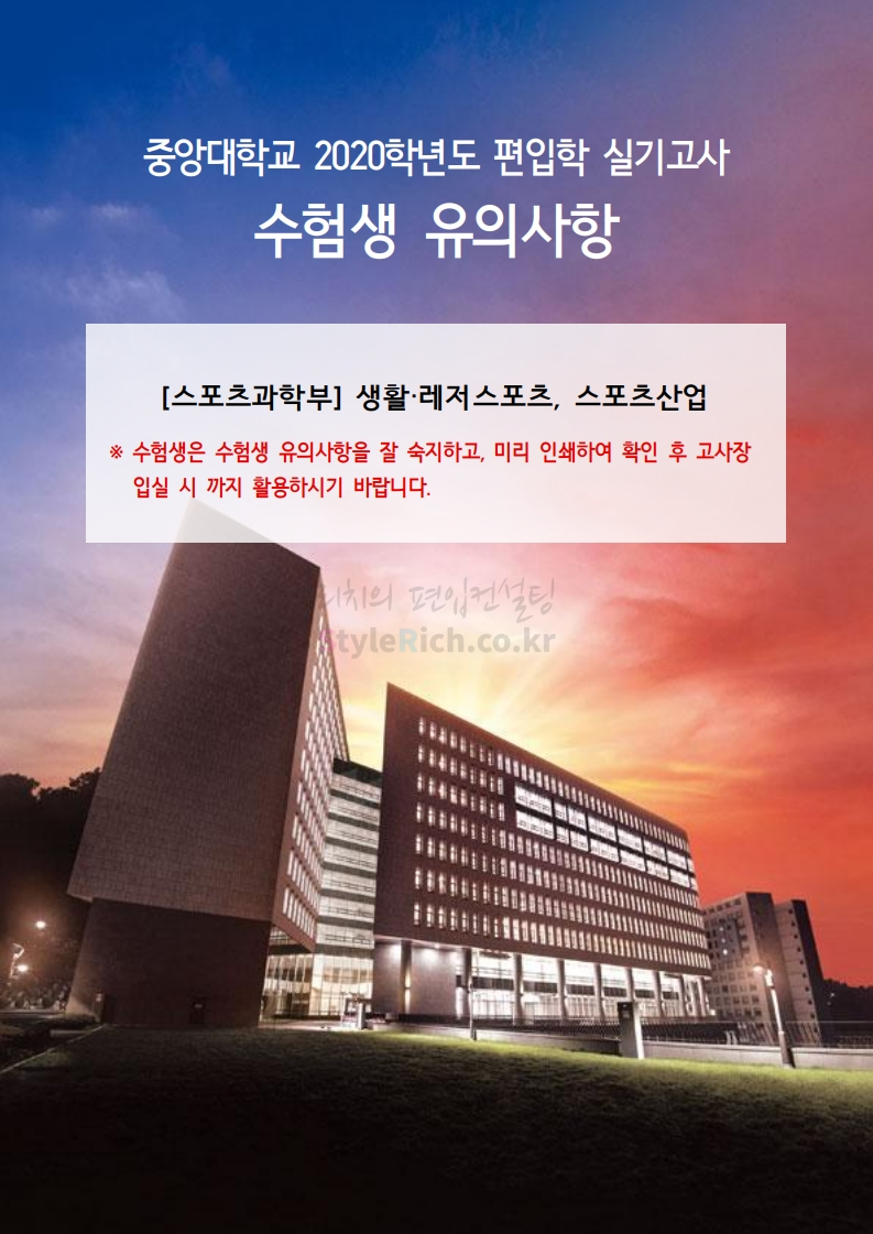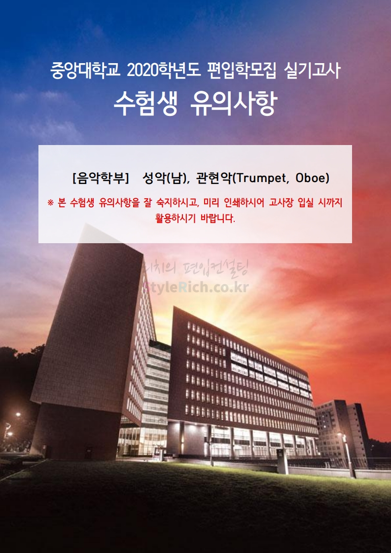 2020학년도 중앙대 편입 필기&실기고사 유의사항을 살펴보겠습니다.