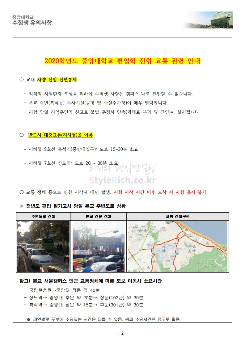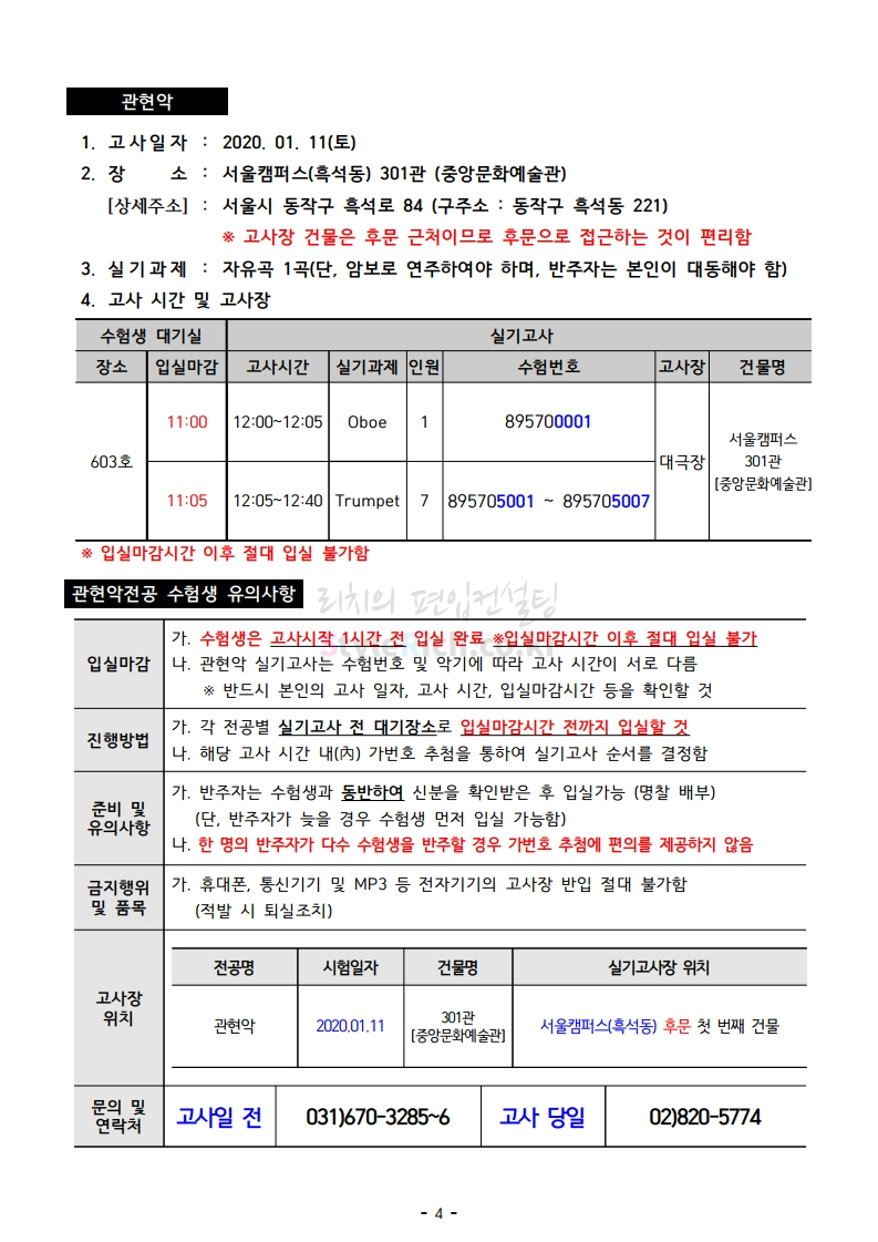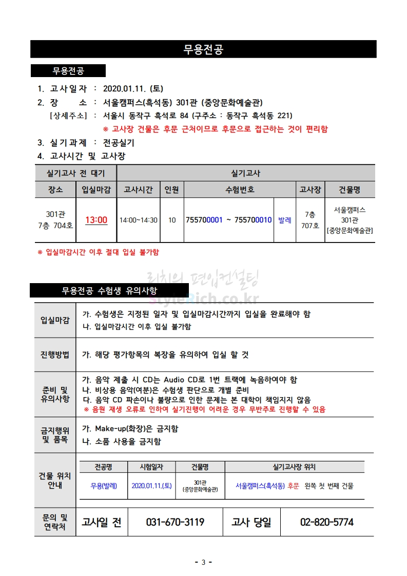 중앙대 편입 2020학년도 필기&실기고사 유의사항 간편하게 보자