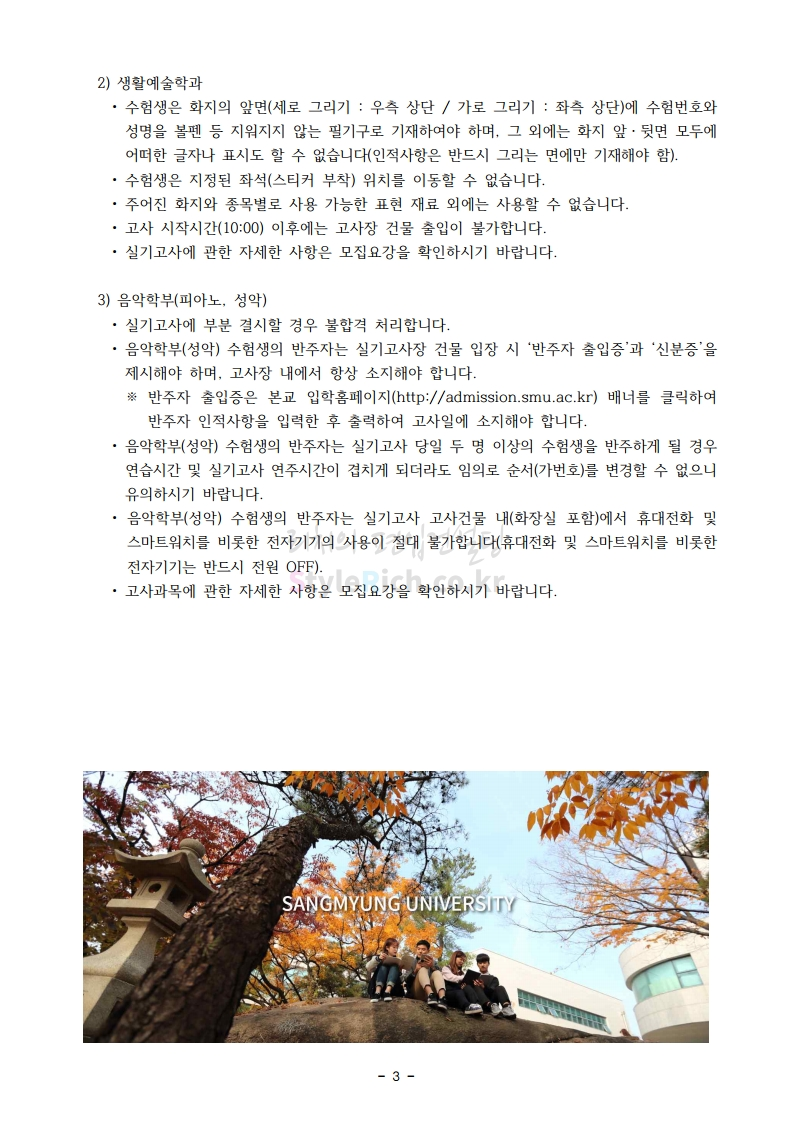 ※ 내용 일부가 변경되거나 오표기가 있을 수 있으므로 시험 전 반드시 상명대 입학처 홈페이지에서 최종적으로 확인 바랍니다.