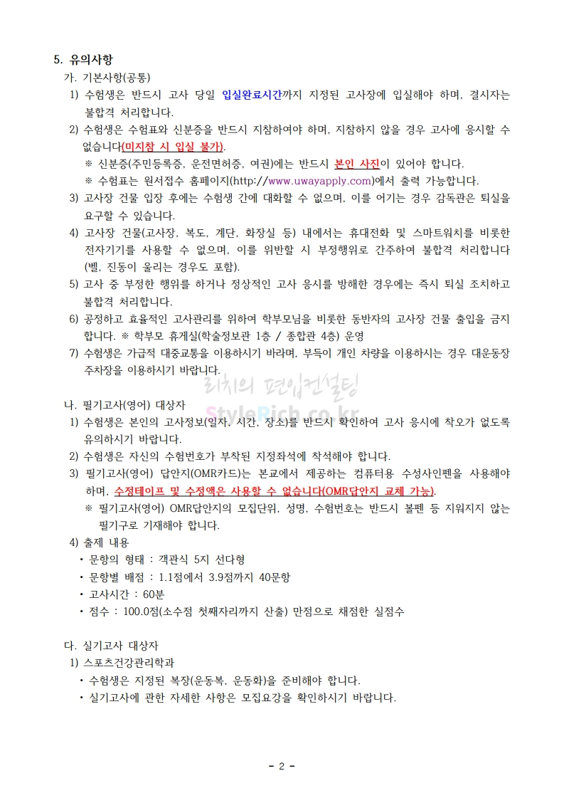 2020학년도 상명대 편입 필기고사 유의사항 02