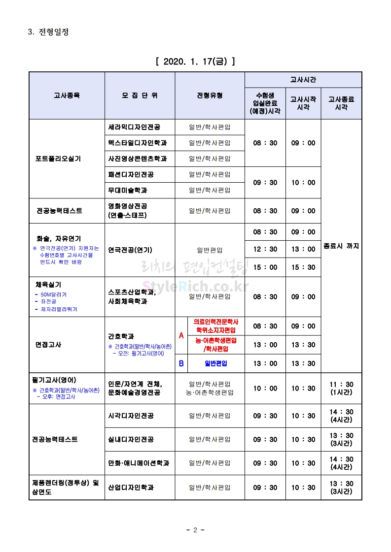 2020학년도 상명대(천안) 편입 필기&실기&면접고사 유의사항 03
