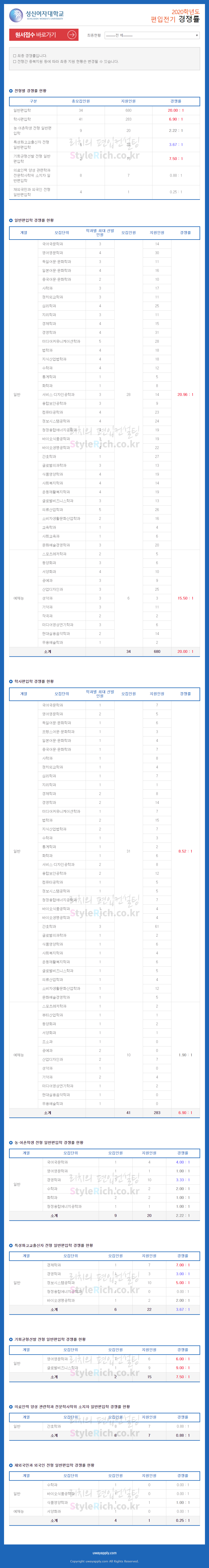 성신여대 편입 2020학년도 경쟁률 간편하게 보자 2020.01.28 00:43 편입 경쟁률/2020학년도 경쟁률 2020학년도 성신여대 편입 경쟁률을 살펴보겠습니다. 일반편입, 기회균형선발편입, 학사편입, 특성화고교출신편입, 농어촌학생편입, 의료인력 양성 관련학과 전문학사학위 소지자편입, 재외국민과 외국인편입 순으로 경쟁률이 높습니다. 2020학년도 성신여대 편입 경쟁률 <출처: 유웨이 어플라이> [학과 TMI] 성신여대 '성신 공학인의 밤' 공유하기 게시글 관리 리치의 편입컨설팅 저작자표시 비영리 변경금지 (새창열림) '편입 경쟁률 > 2020학년도 경쟁률' 카테고리의 다른 글 인천대 편입 2020학년도 경쟁률 간편하게 보자 (0) 2020.01.28 삼육대 편입 2020학년도 경쟁률 간편하게 보자 (0) 2020.01.28 동국대 편입 2020학년도 경쟁률 간편하게 보자 (0) 2020.01.27 고려대(세종) 편입 2020학년도 경쟁률 간편하게 보자 (0) 2020.01.27 한국외대 편입 2020학년도 경쟁률 간편하게 보자 (0) 2020.01.27 댓글 공유하기 다른 글 댓글 이 글 공유하기 구독하기 구독하기 카카오톡 카카오톡 라인 라인 트위터 트위터 Facebook Facebook 카카오스토리 카카오스토리 밴드 밴드 네이버 블로그 네이버 블로그 Pocket Pocket Evernote Evernote 다른 글 인천대 편입 2020학년도 경쟁률 간편하게 보자 인천대 편입 2020학년도 경쟁률 간편하게 보자 2020.01.28 삼육대 편입 2020학년도 경쟁률 간편하게 보자 삼육대 편입 2020학년도 경쟁률 간편하게 보자 2020.01.28 동국대 편입 2020학년도 경쟁률 간편하게 보자 동국대 편입 2020학년도 경쟁률 간편하게 보자 2020.01.27 고려대(세종) 편입 2020학년도 경쟁률 간편하게 보자 고려대(세종) 편입 2020학년도 경쟁률 간편하게 보자 2020.01.27 다른 글 더 둘러보기