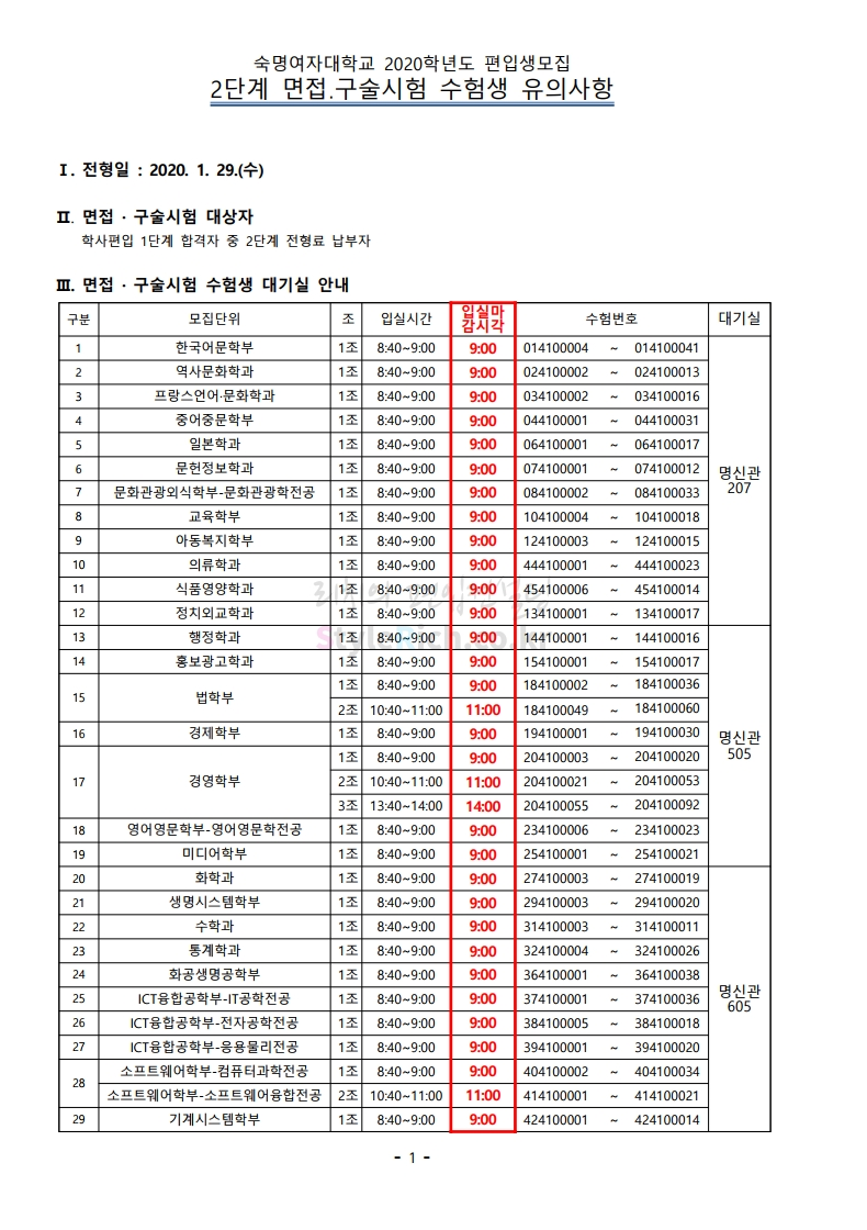 숙명여대 편입 2020학년도 면접고사 유의사항 간편하게 보자 2020.01.31 00:17 편입 유의사항/2020학년도 유의사항 2020학년도 숙명여대 편입 면접고사 유의사항을 살펴보겠습니다. 2020학년도 숙명여대 편입 면접 구술시험 유의사항 01 2020학년도 숙명여대 편입 면접 구술시험 유의사항 02 <출처: 숙명여대 홈페이지> 교수님이 이 영상을 본다면?(죄송합니다....) EP.1 월간교수님 시즌2 - 숙명여대 공대 김봉준 교수님 공유하기 게시글 관리 리치의 편입컨설팅 저작자표시 비영리 변경금지 (새창열림) '편입 유의사항 > 2020학년도 유의사항' 카테고리의 다른 글 인천대 편입 2020학년도 면접고사 유의사항 간편하게 보자 (0) 2020.01.31 아주대 편입 2020학년도 면접고사 유의사항 간편하게 보자 (0) 2020.01.31 성균관대 편입 2020학년도 면접고사 유의사항 간편하게 보자 (0) 2020.01.30 서울과학기술대 편입 2020학년도 면접고사 유의사항 간편하게 보자 (0) 2020.01.30 서울과학기술대 편입 2020학년도 조형대학 실기고사 유의사항 간편하게 보자 (0) 2020.01.30 댓글 공유하기 다른 글 댓글 이 글 공유하기 구독하기 구독하기 카카오톡 카카오톡 라인 라인 트위터 트위터 Facebook Facebook 카카오스토리 카카오스토리 밴드 밴드 네이버 블로그 네이버 블로그 Pocket Pocket Evernote Evernote 다른 글 인천대 편입 2020학년도 면접고사 유의사항 간편하게 보자 인천대 편입 2020학년도 면접고사 유의사항 간편하게 보자 2020.01.31 아주대 편입 2020학년도 면접고사 유의사항 간편하게 보자 아주대 편입 2020학년도 면접고사 유의사항 간편하게 보자 2020.01.31 성균관대 편입 2020학년도 면접고사 유의사항 간편하게 보자 성균관대 편입 2020학년도 면접고사 유의사항 간편하게 보자 2020.01.30 서울과학기술대 편입 2020학년도 면접고사 유의사항 간편하게 보자 서울과학기술대 편입 2020학년도 면접고사 유의사항 간편하게 보자 2020.01.30 다른 글 더 둘러보기