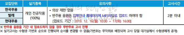 무용과의 실기고사는 개인 전공작품을 100%반영하고 고사시간은 2분 이내입니다.