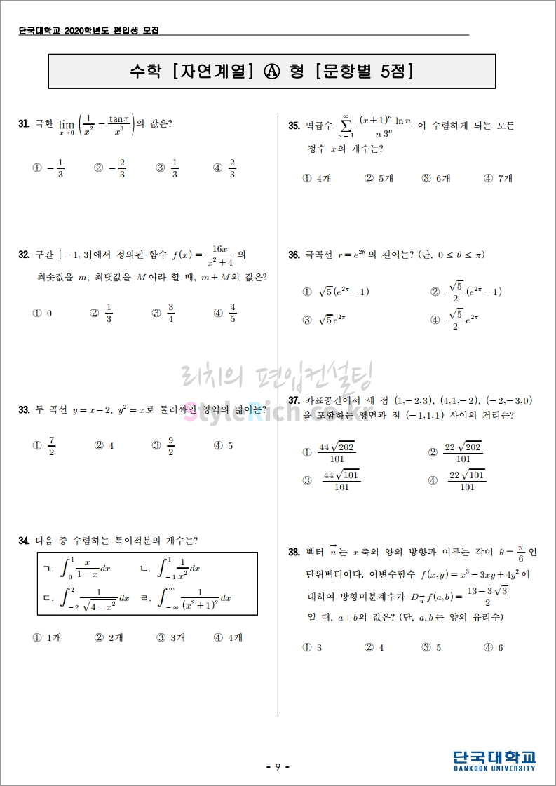 2020학년도 단국대(죽전) 편입 기출문제를 살펴보겠습니다.
