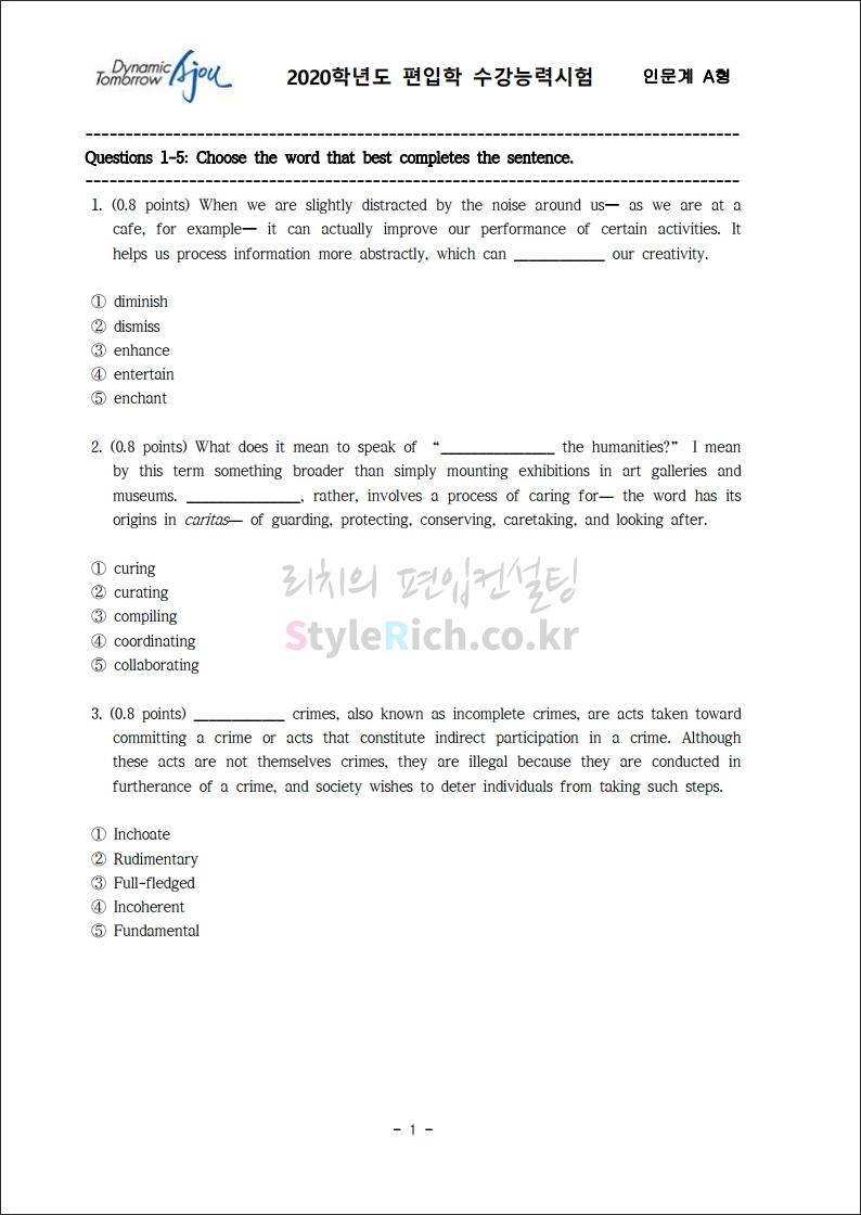• 2020학년도 숭실대 편입 기출문제가 궁금하다면?