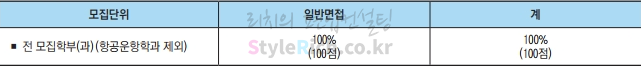 2020학년도 한국항공대 군위탁편입은 전모집학부(항공운항학과 제외)에서 면접 100%를 반영합니다. 면접방법은 면접위원 2인에 수험생 1인으로 10분이내로 지원동기, 학업계획, 인성 등을 평가합니다.
