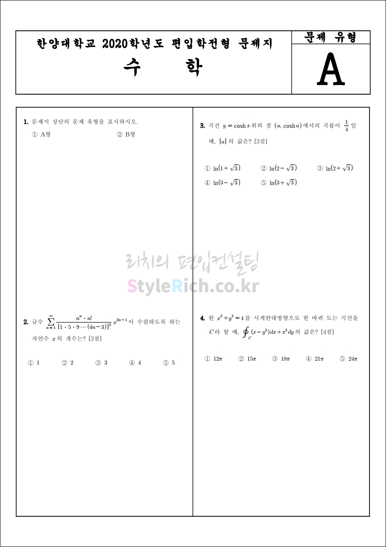 2020학년도 한양대 편입 기출문제를 살펴보겠습니다.