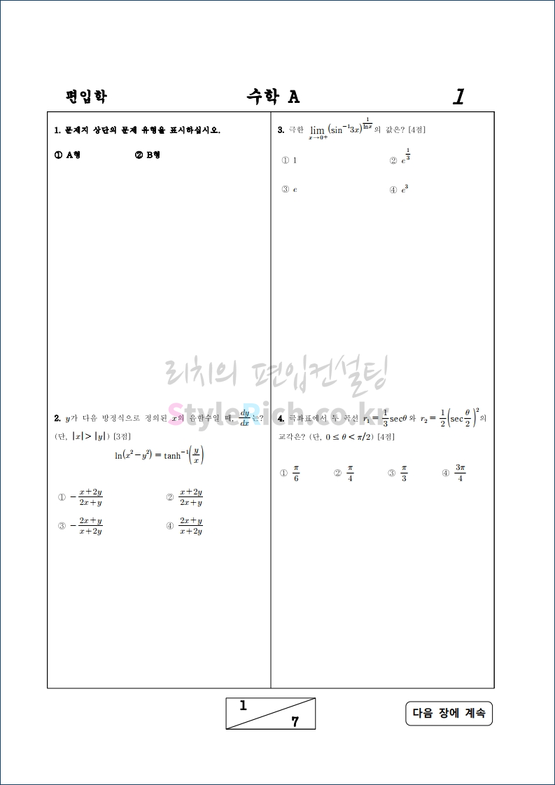 2020학년도 한양대(에리카) 편입 기출문제를 살펴보겠습니다.