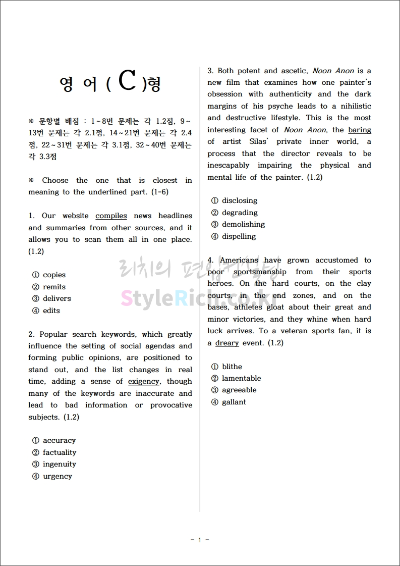 2020학년도 경기대 편입 기출문제가 궁금하다면?