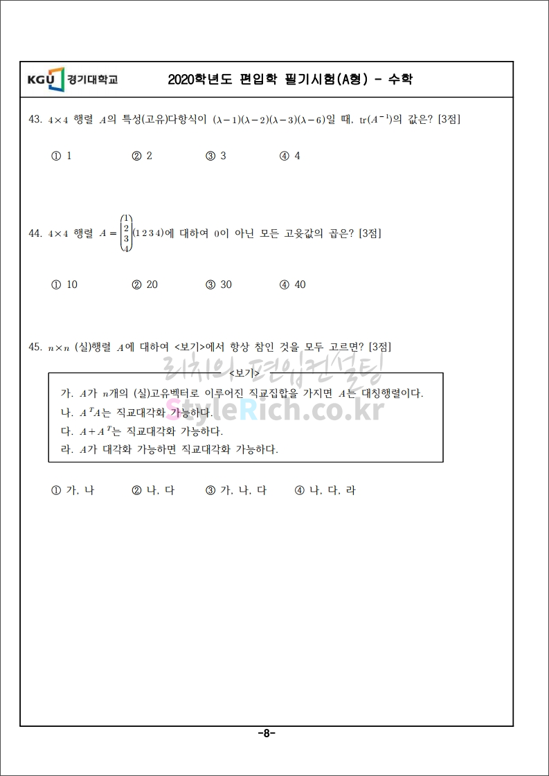 2020학년도 경기대 편입 기출문제 수학 10페이지