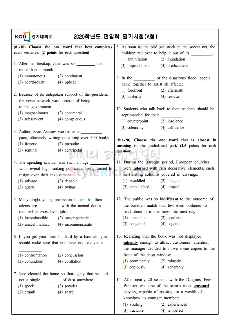 2020학년도 경기대 편입 영어 기출문제 3페이지