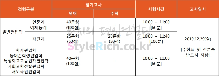 2020학년도 경기대 편입 필기고사