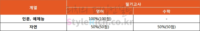 2020학년도 경기대 일반편입은 인문, 예체능계에서 영어 100%, 자연계에서 영어 50%, 수학 50%를 반영하고 나머지 전형은 모두 영어를 100% 반영합니다.