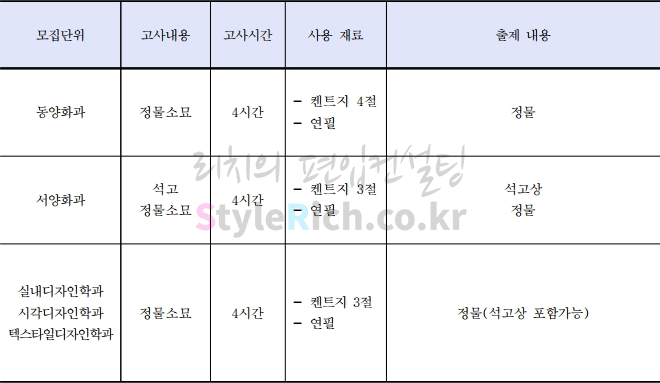 2020학년도 덕성여대 편입 미술 실기고사는 동양화과에서 정물소묘, 서양화과에서 석고 정물소묘, 실내디자인학과, 시각디자인학과, 텍스타일디자인학과에서 정물소묘로 4시간 동안 실시합니다.