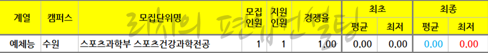 * 스포츠과학부 스포츠건강과학전공의 최종등록자가 없어 최종합격점수가 없습니다.