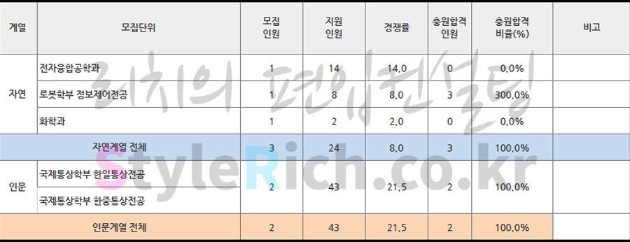2020학년도 광운대 재외국민 편입 추가합격 현황